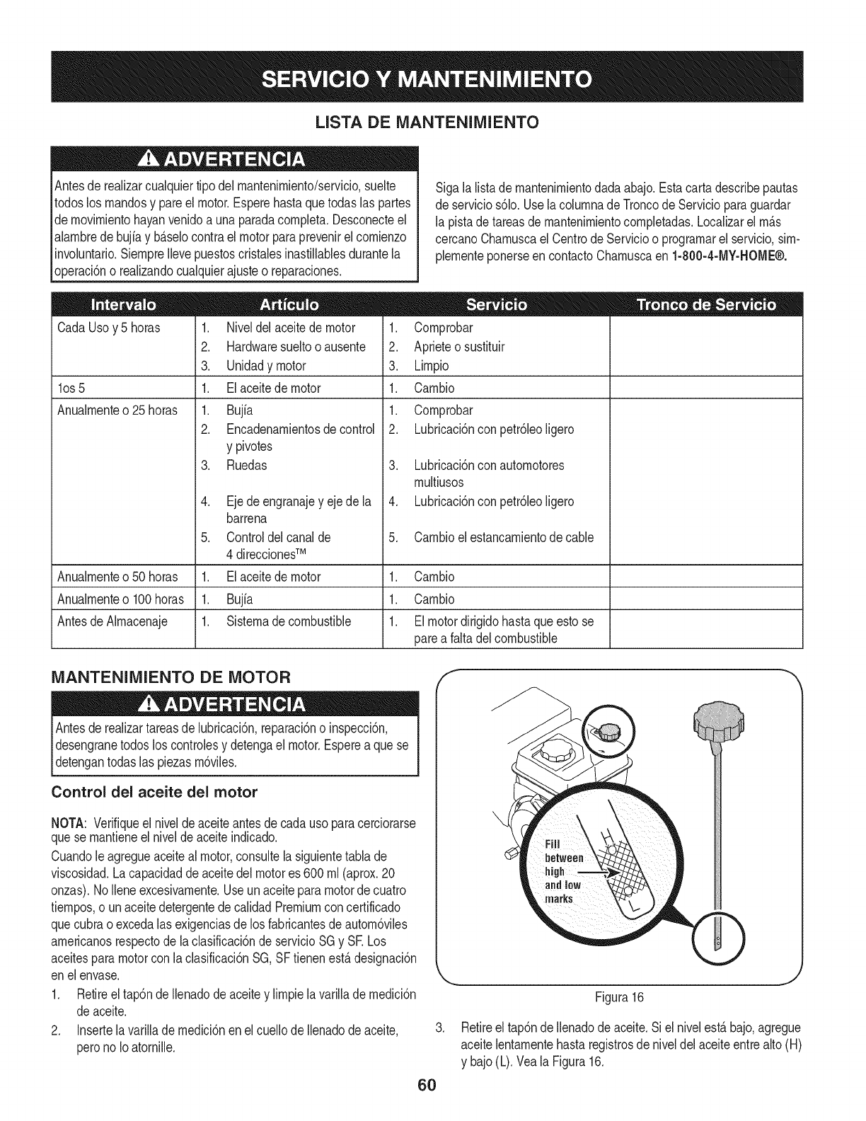 Para los motores con desplazamiento de 225 cc o mAs, Categoria C = 250 horas, B = 500 horas y A = 1000 horas.