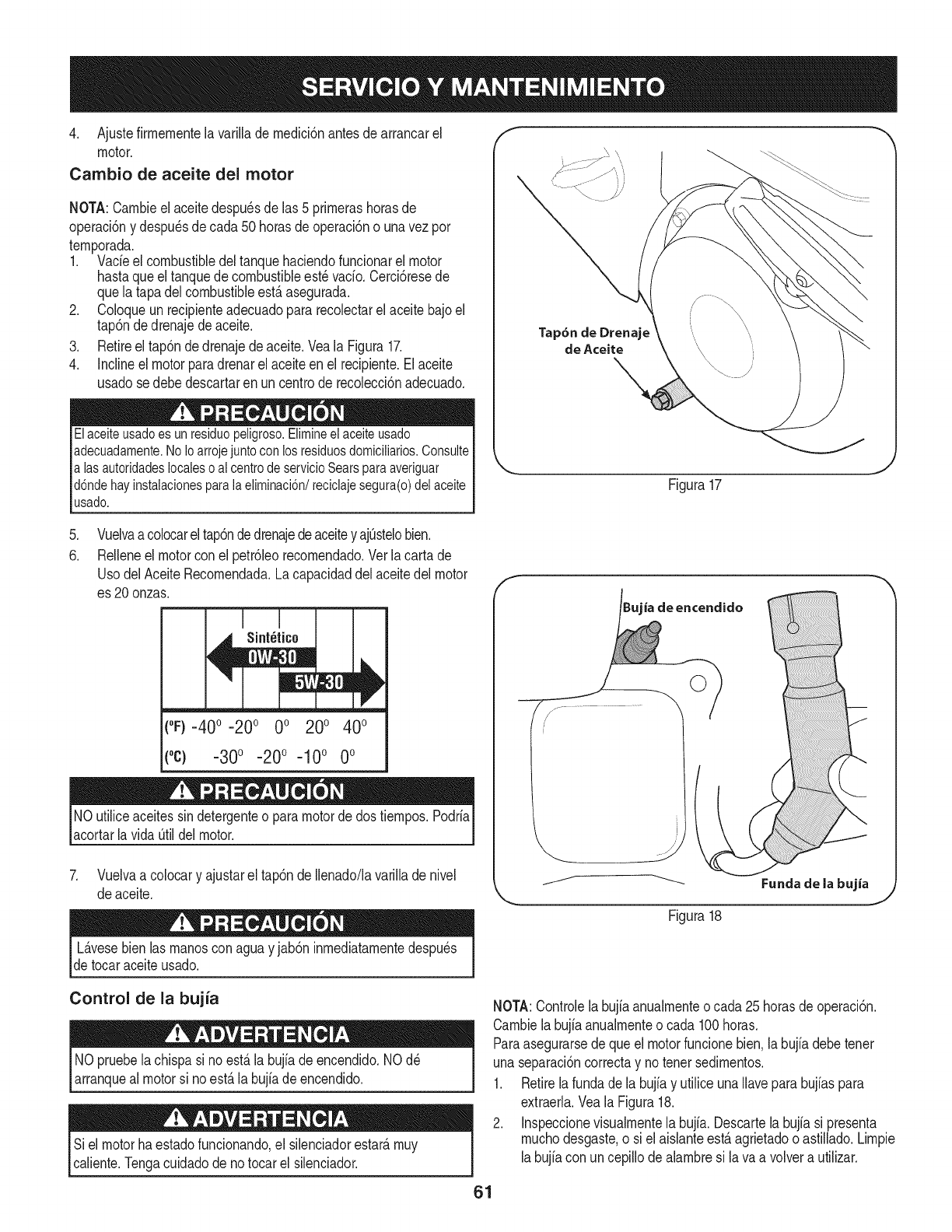 Para los motores con desplazamiento inferior a 225 cc, Categoria C = 125 horas, B = 250 horas y A = 500 horas.