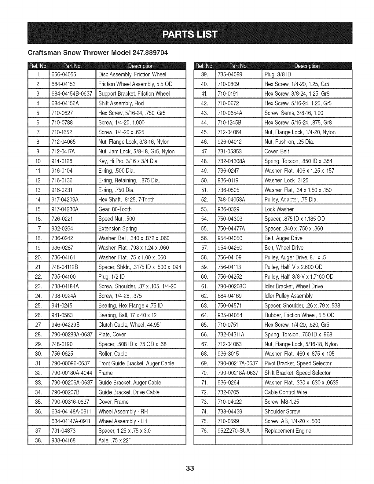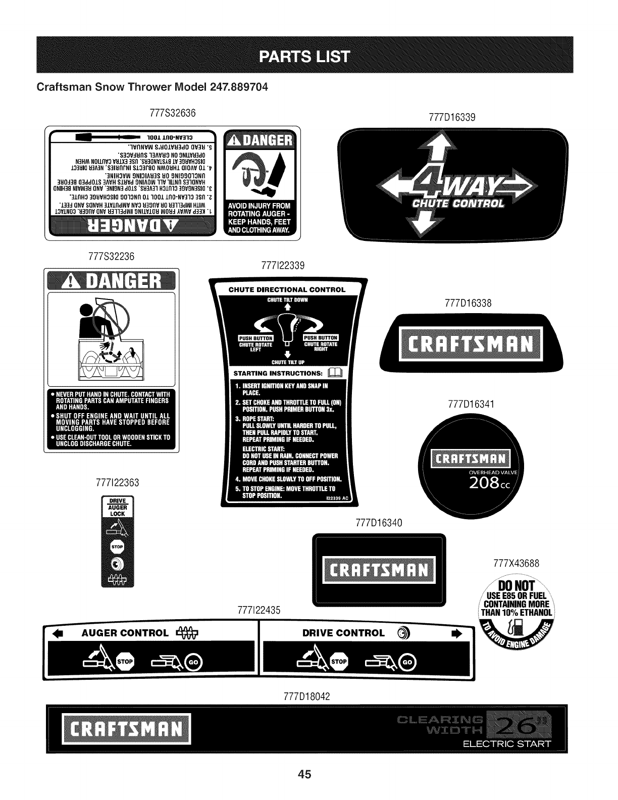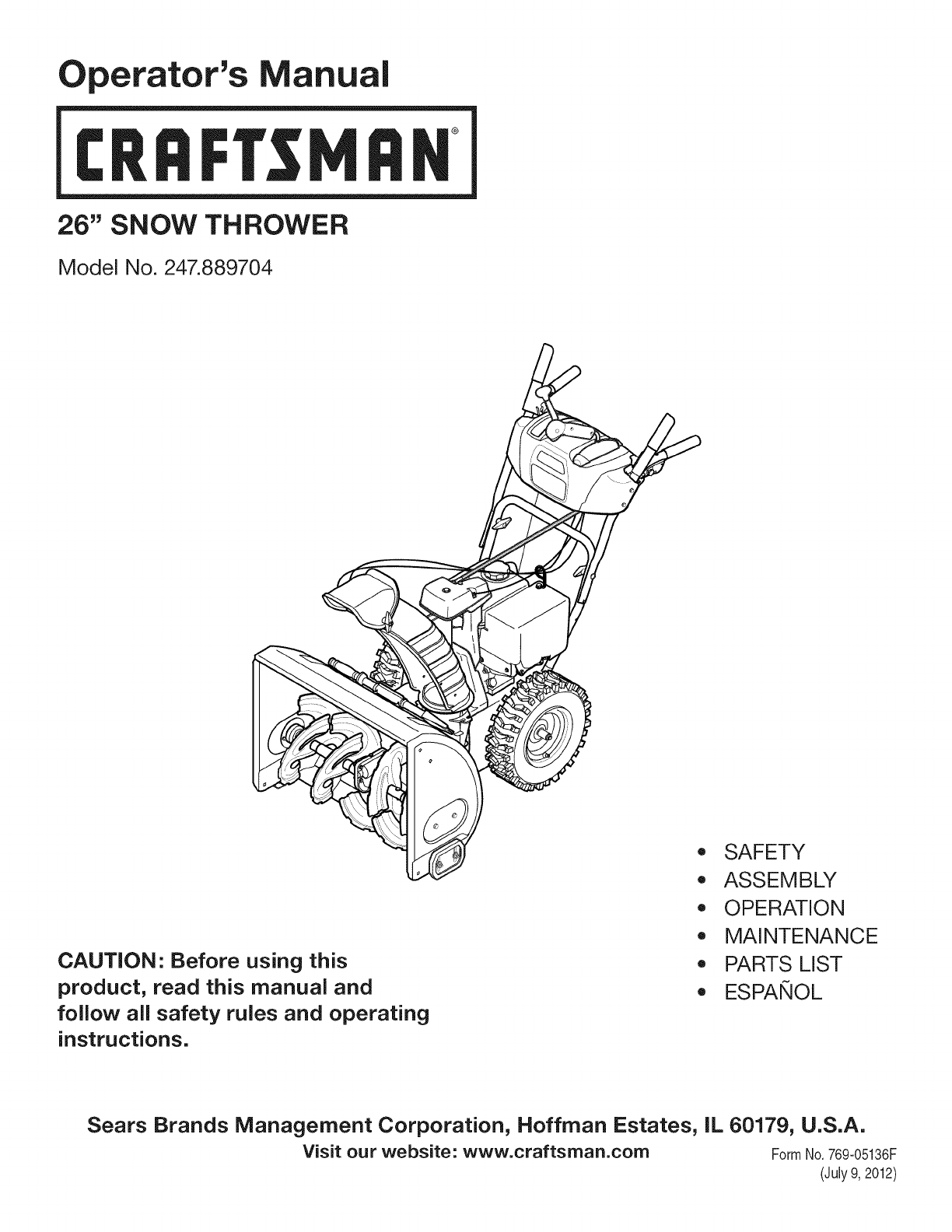 User Manual: Craftsman 247889704 247889704 CRAFTSMAN SNOWTHROWER - Manuals and Guides View the owners manual for your CRAFTSMAN SNOWTHROWER #247889704. Home:Lawn & Garden Parts:Craftsman Parts:Craftsman SNOWTHROWER Manual