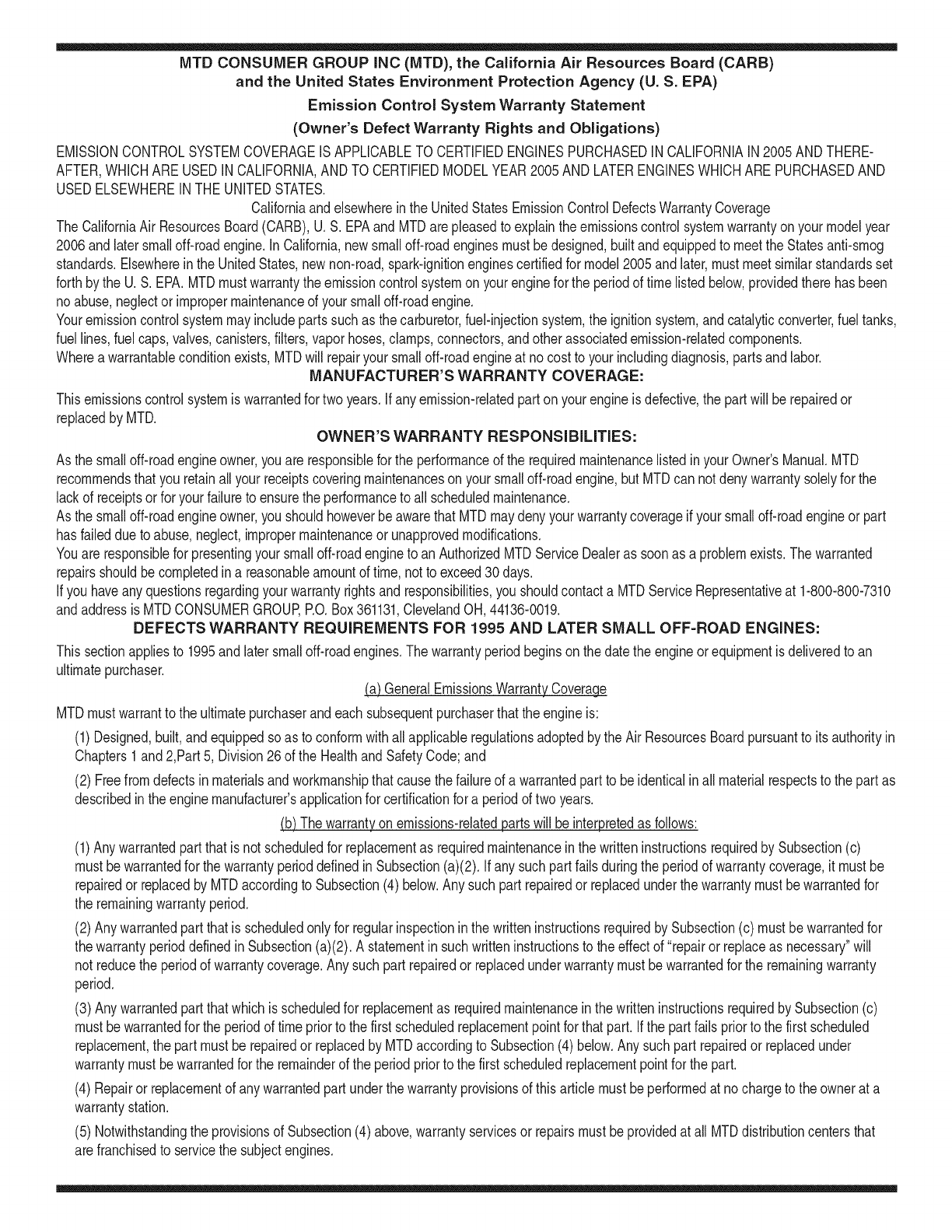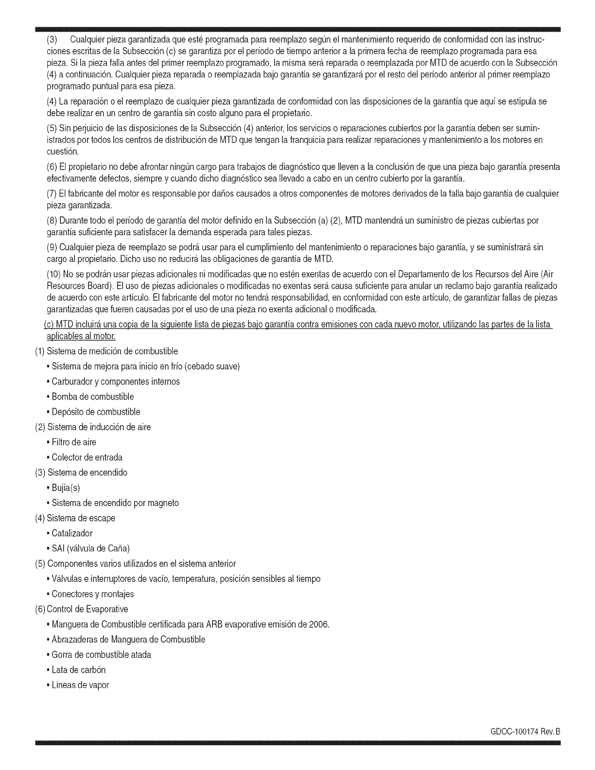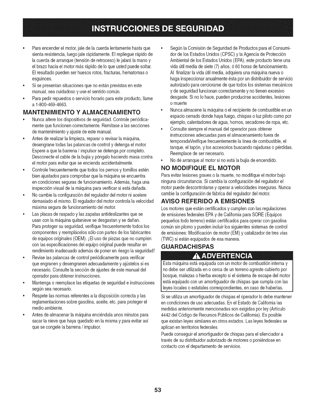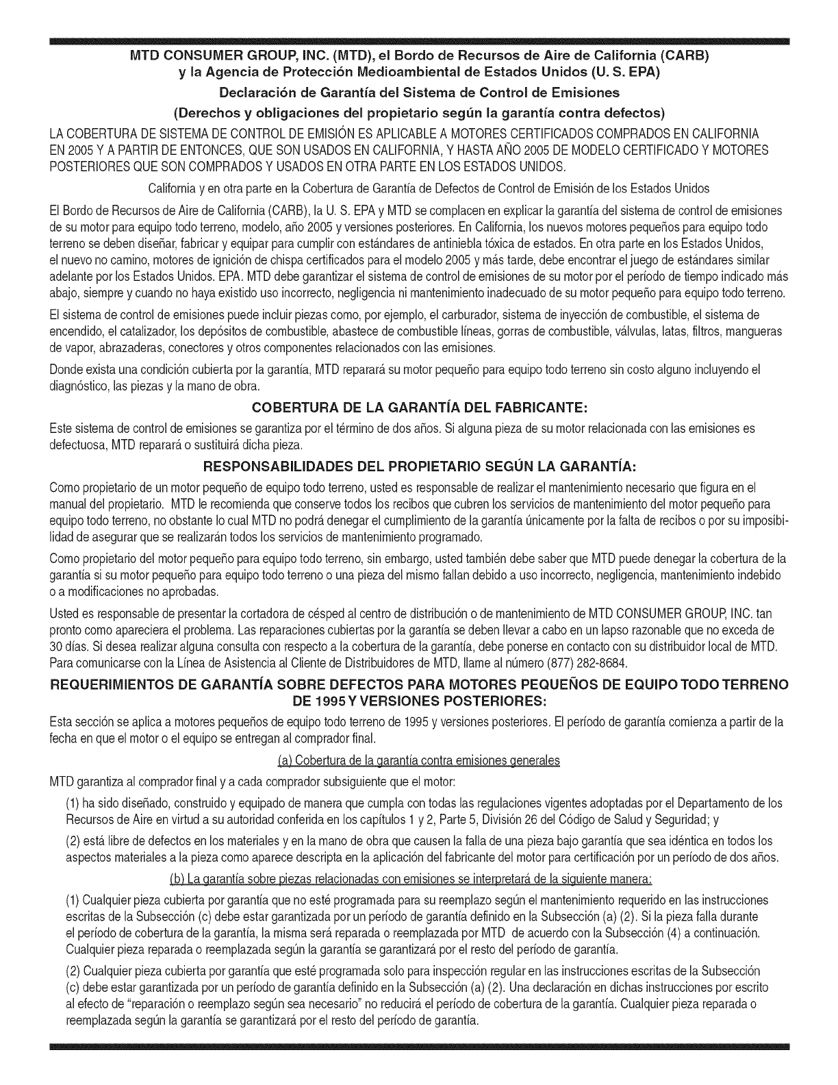 el motor cumpie con ias reglas de emisi6n, descontando el mantenimiento adecuado del mismo segQn las instrucciones de oper-