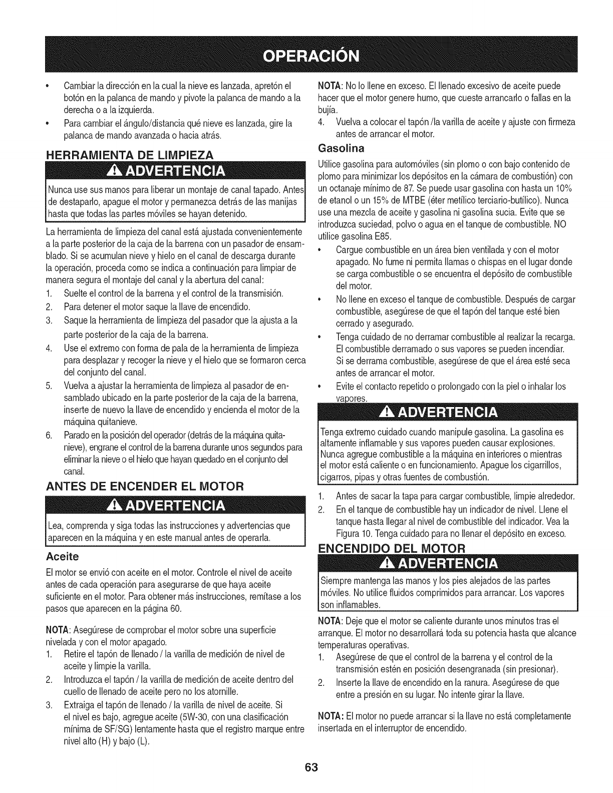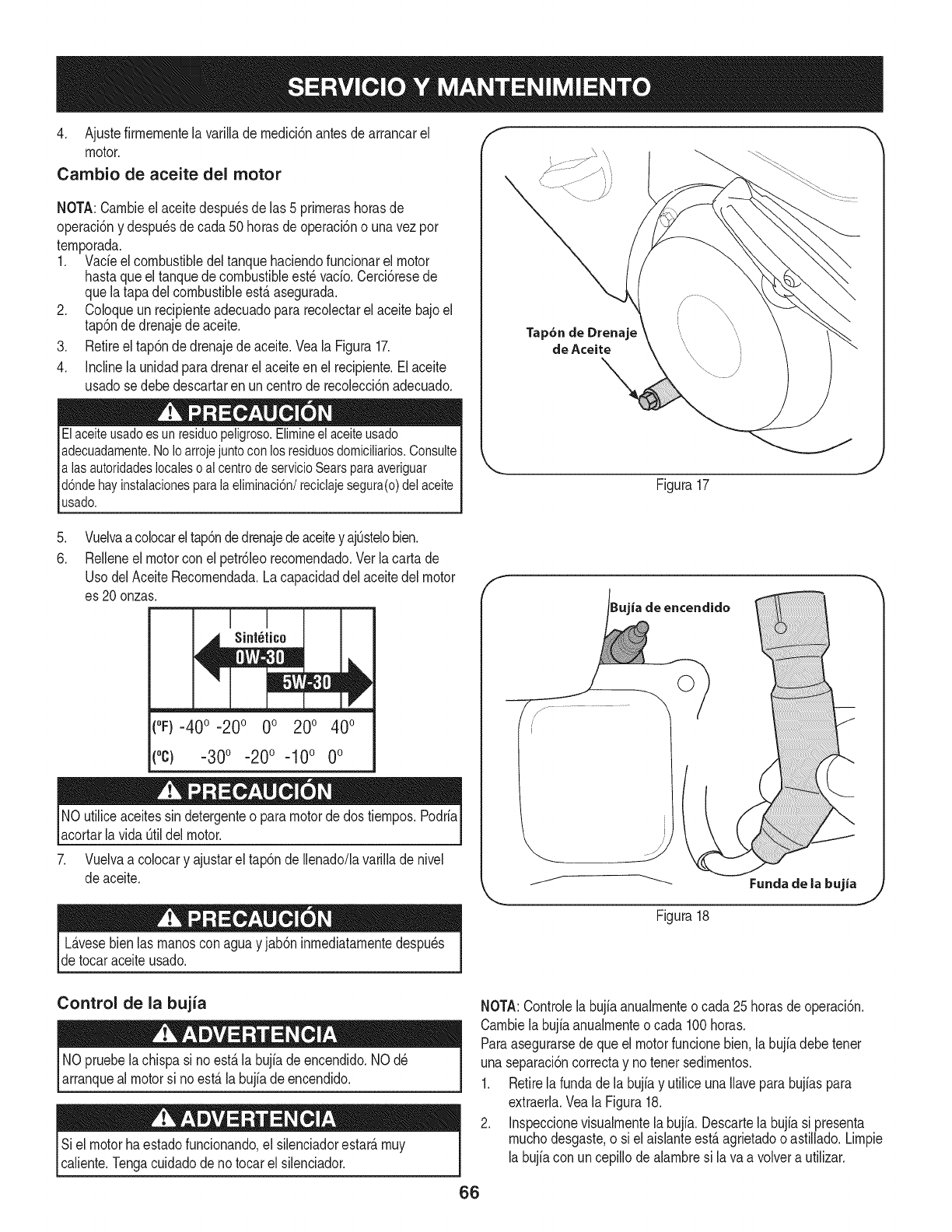 Para los motores con desplazamiento inferior a 225 cc, Categoria C = 125 horas, B = 250 horas y A = 500 horas.