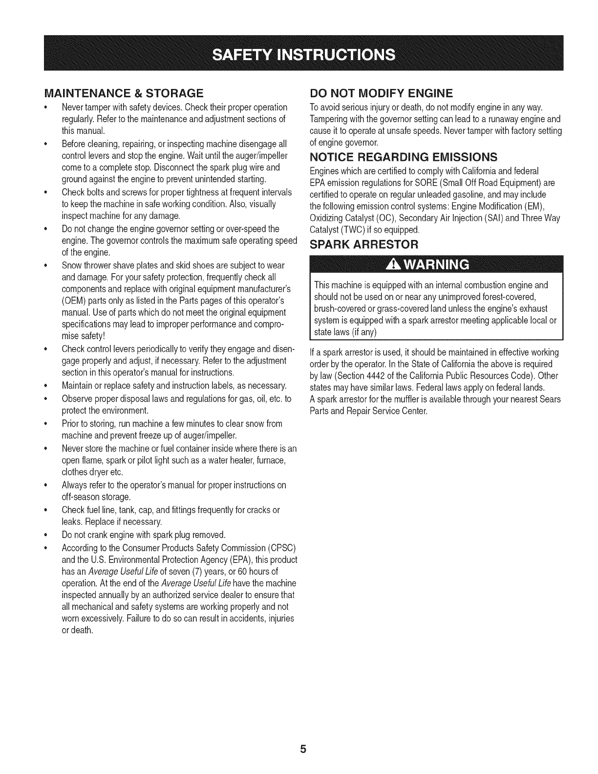 storage,failureto usethe propergradeandamountof engineoil, or failureto maintainthe equipmentaccordingto the instructionscontained
