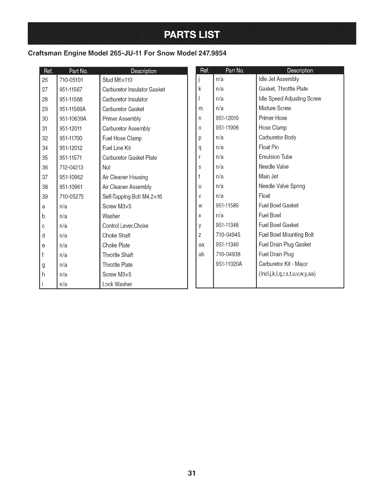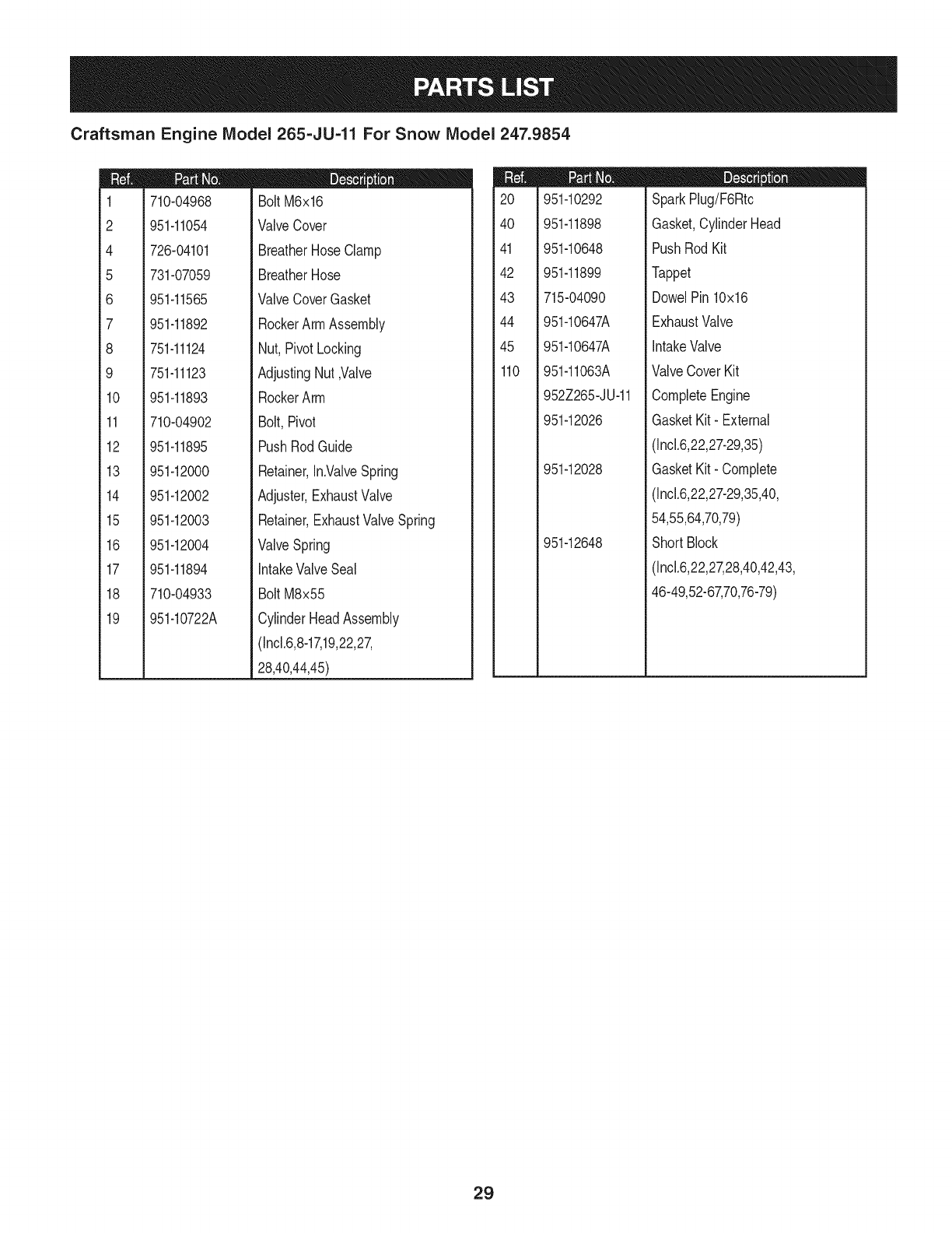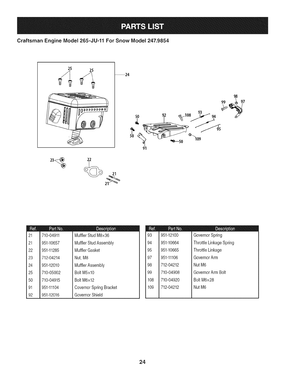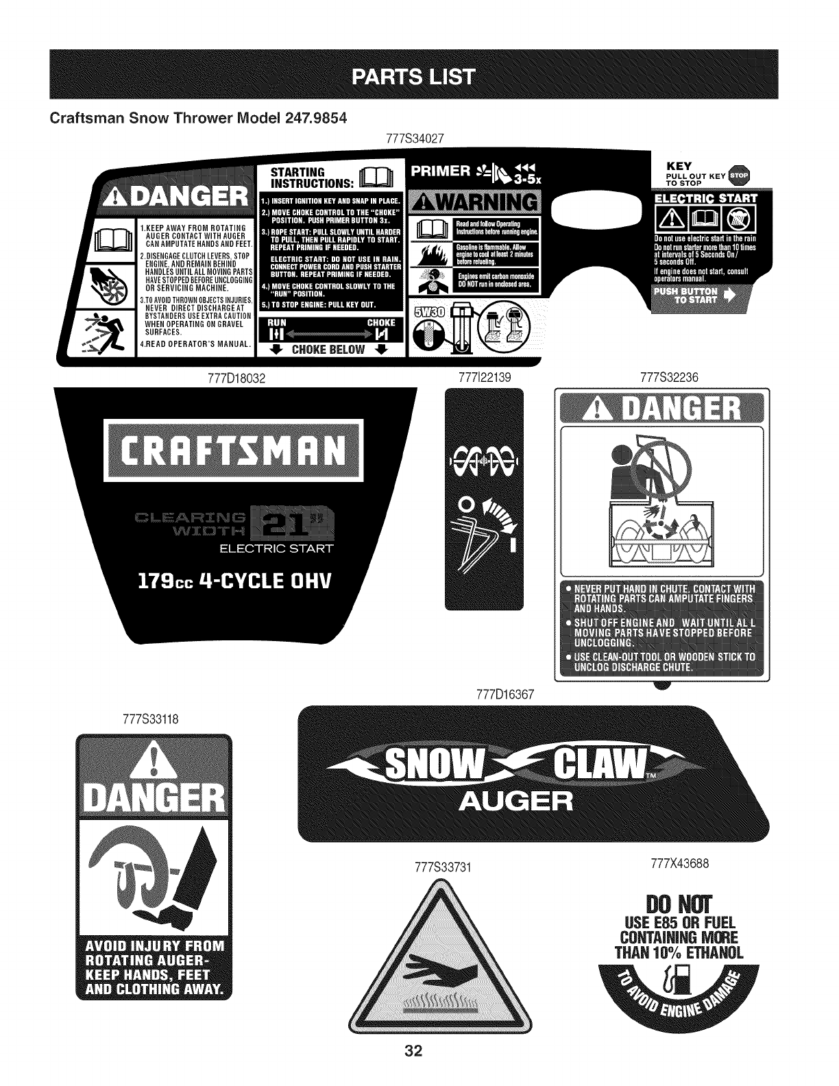 User Manual: Craftsman 2479854 2479854 CRAFTSMAN SNOW THROWER - Manuals and Guides View the owners manual for your CRAFTSMAN SNOW THROWER #2479854. Home:Lawn & Garden Parts:Craftsman Parts:Craftsman SNOW THROWER Manual
