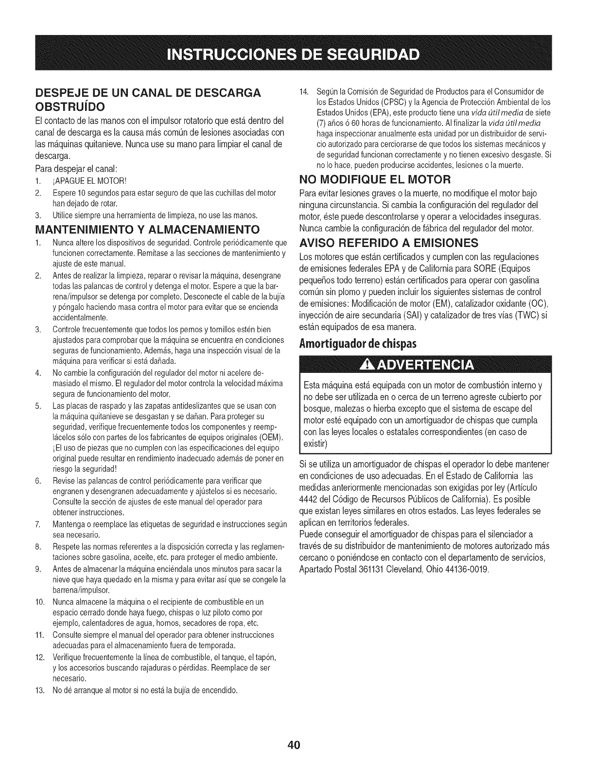 el motor cumpie con ias reglas de emisi6n, descontando el mantenimiento adecuado del mismo segQn las instrucciones de oper-