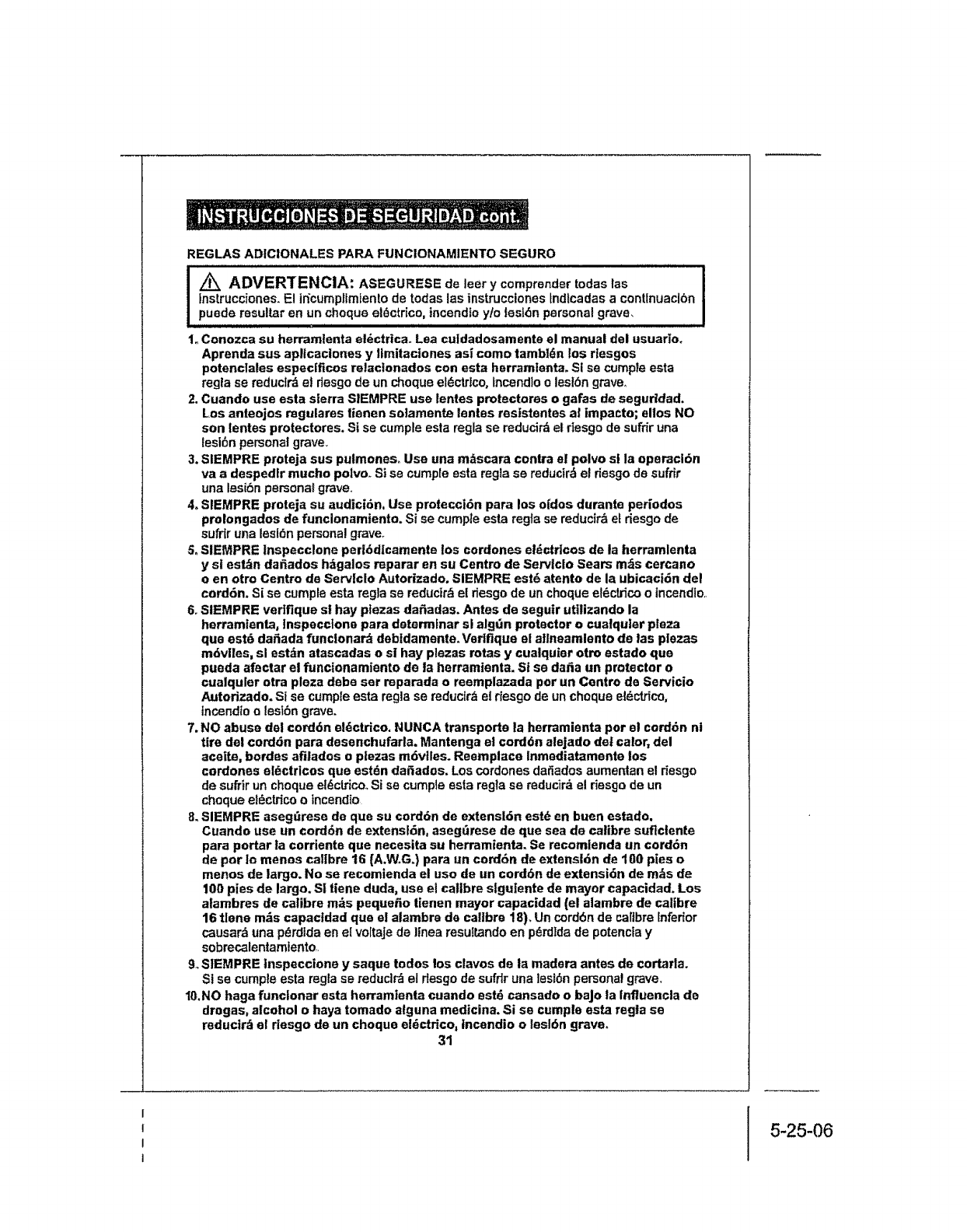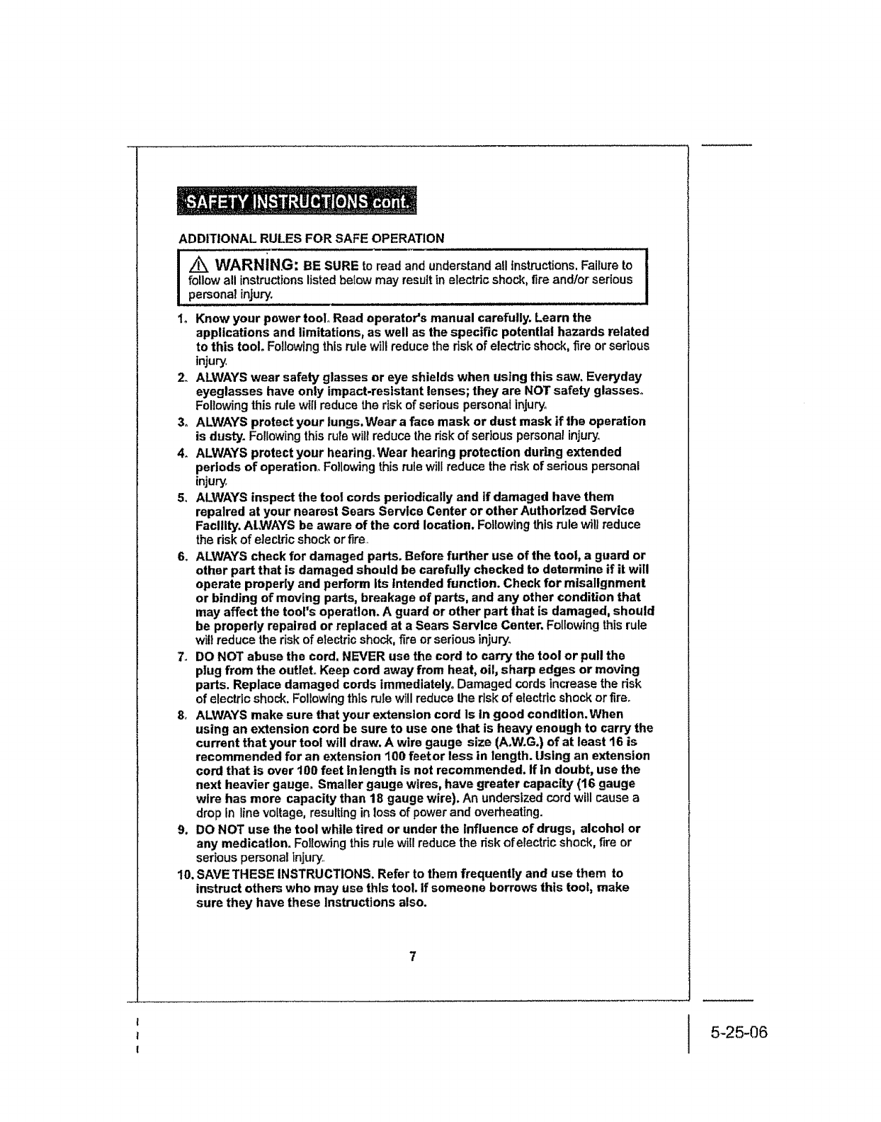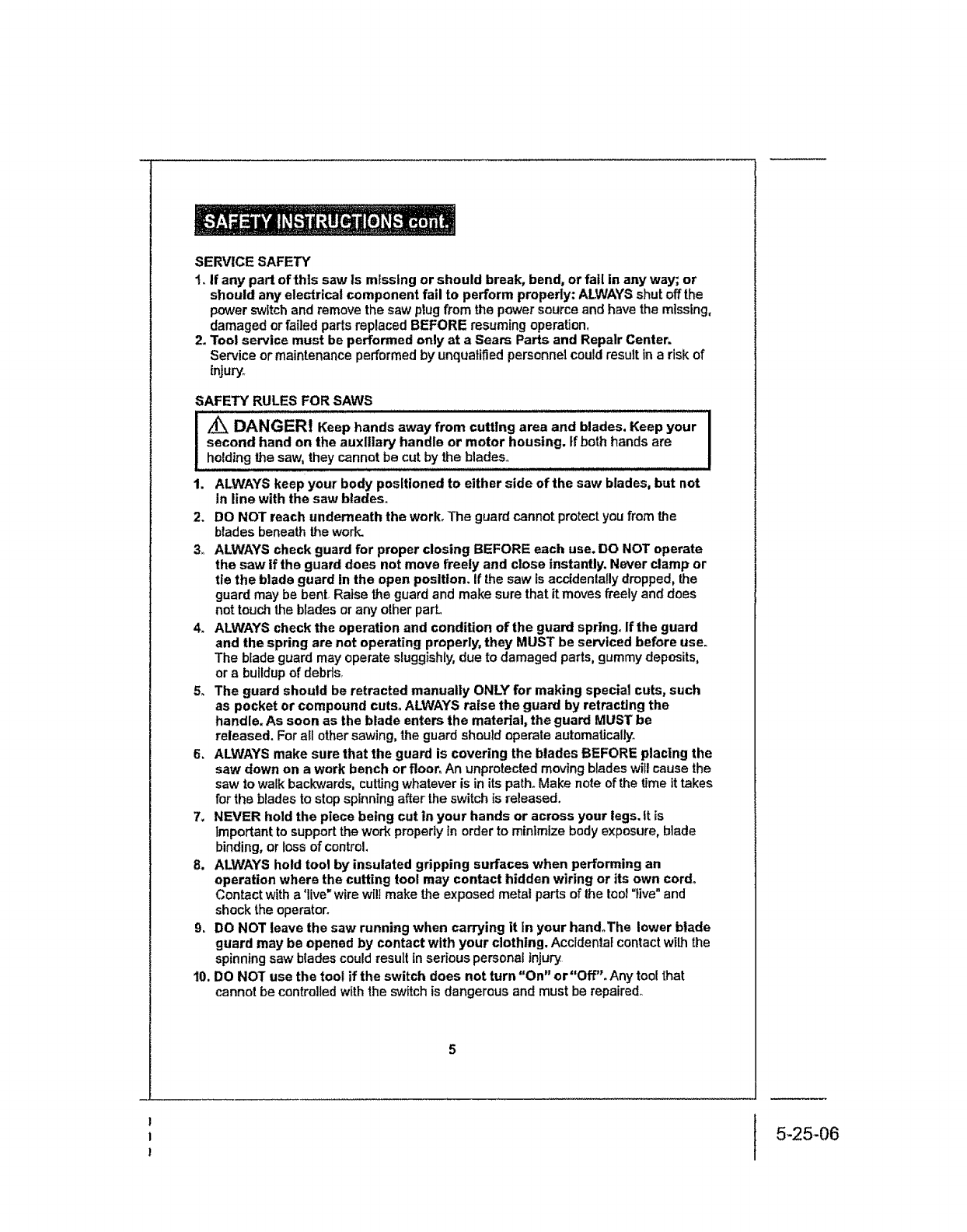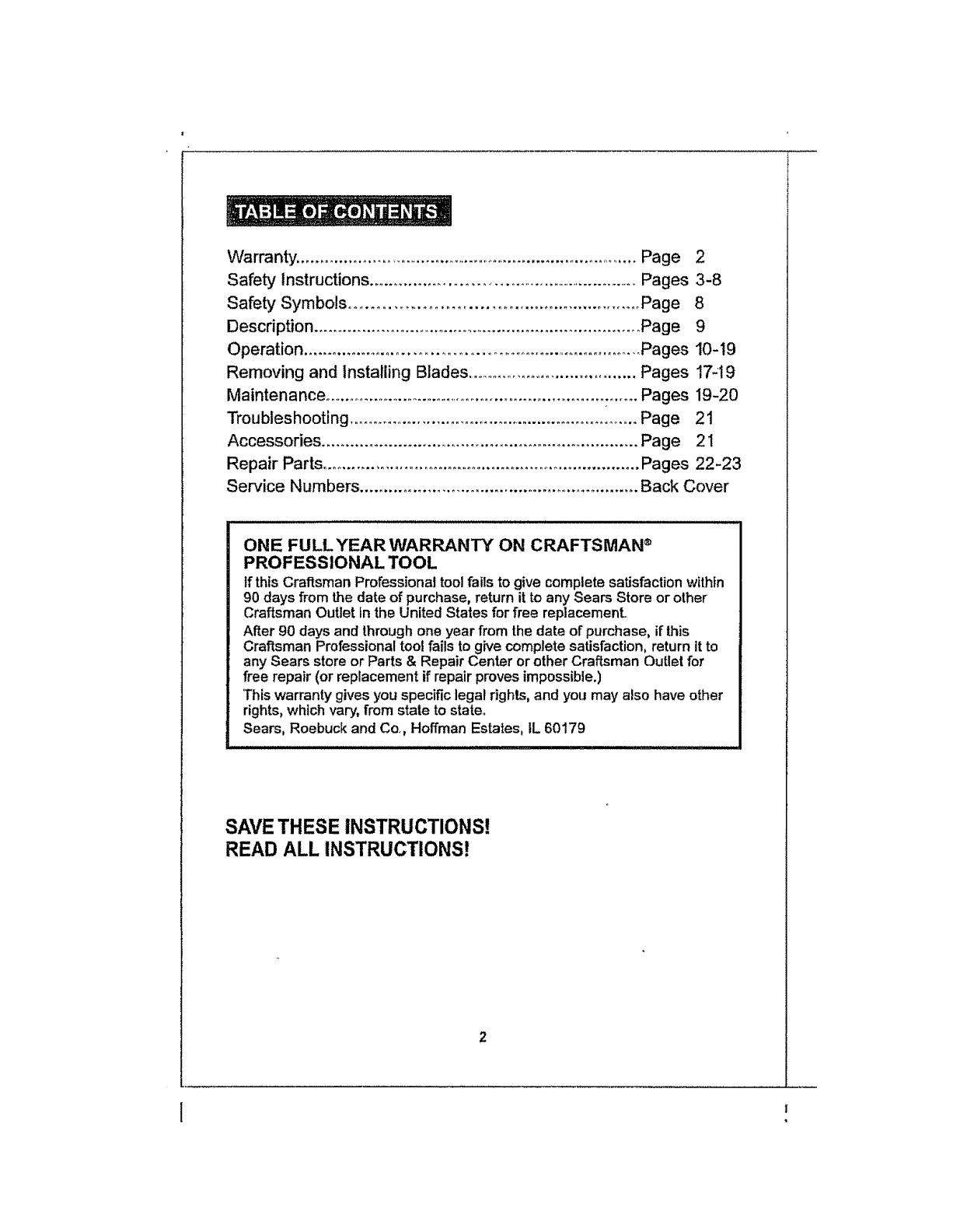 Craftsman 28625574 User Manual SAW Manuals And Guides L1001154
