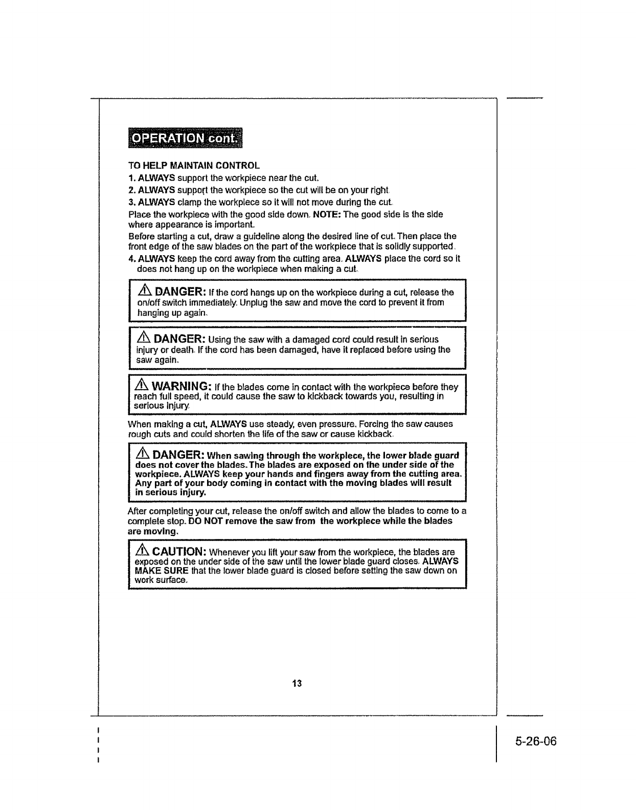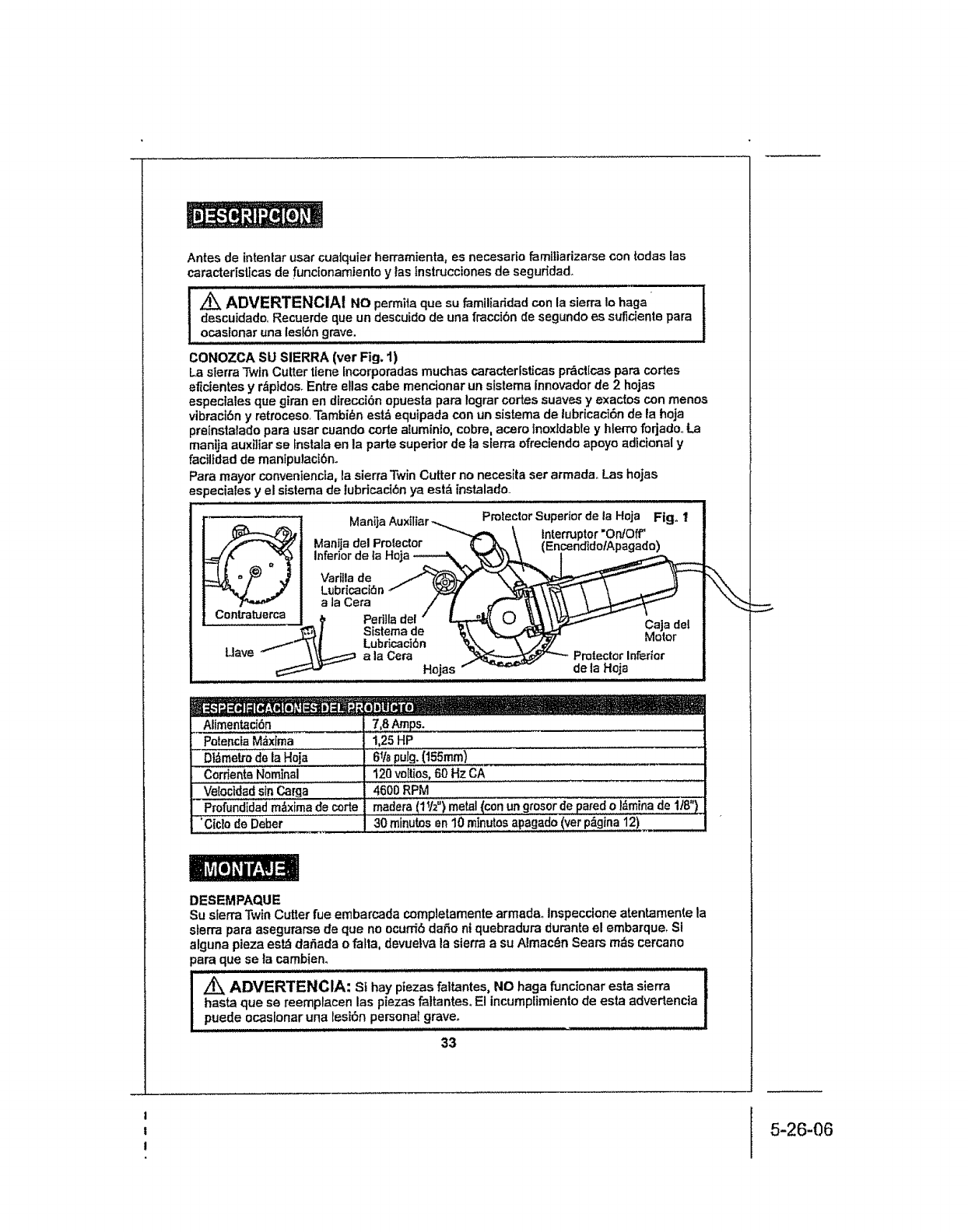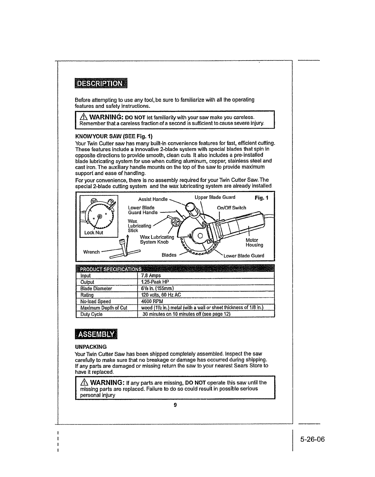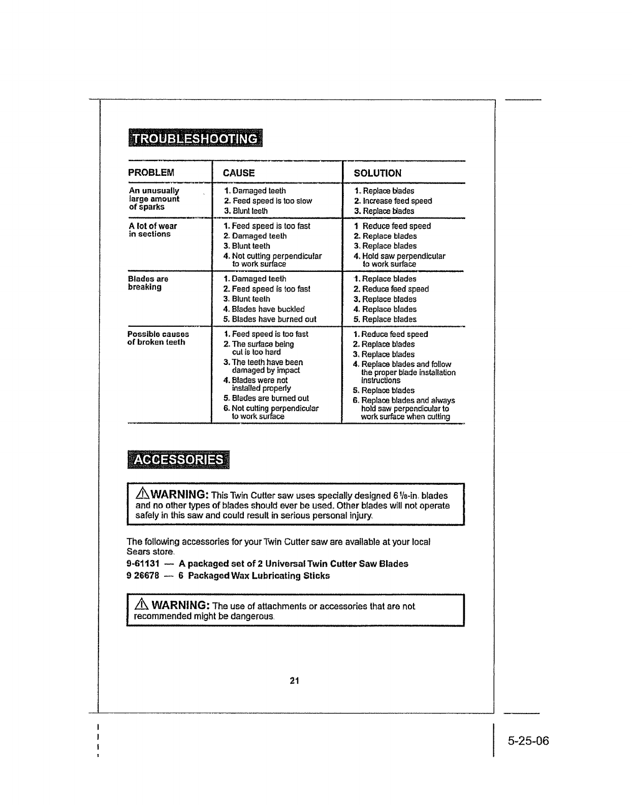 Craftsman 28625574 User Manual SAW Manuals And Guides L1001154