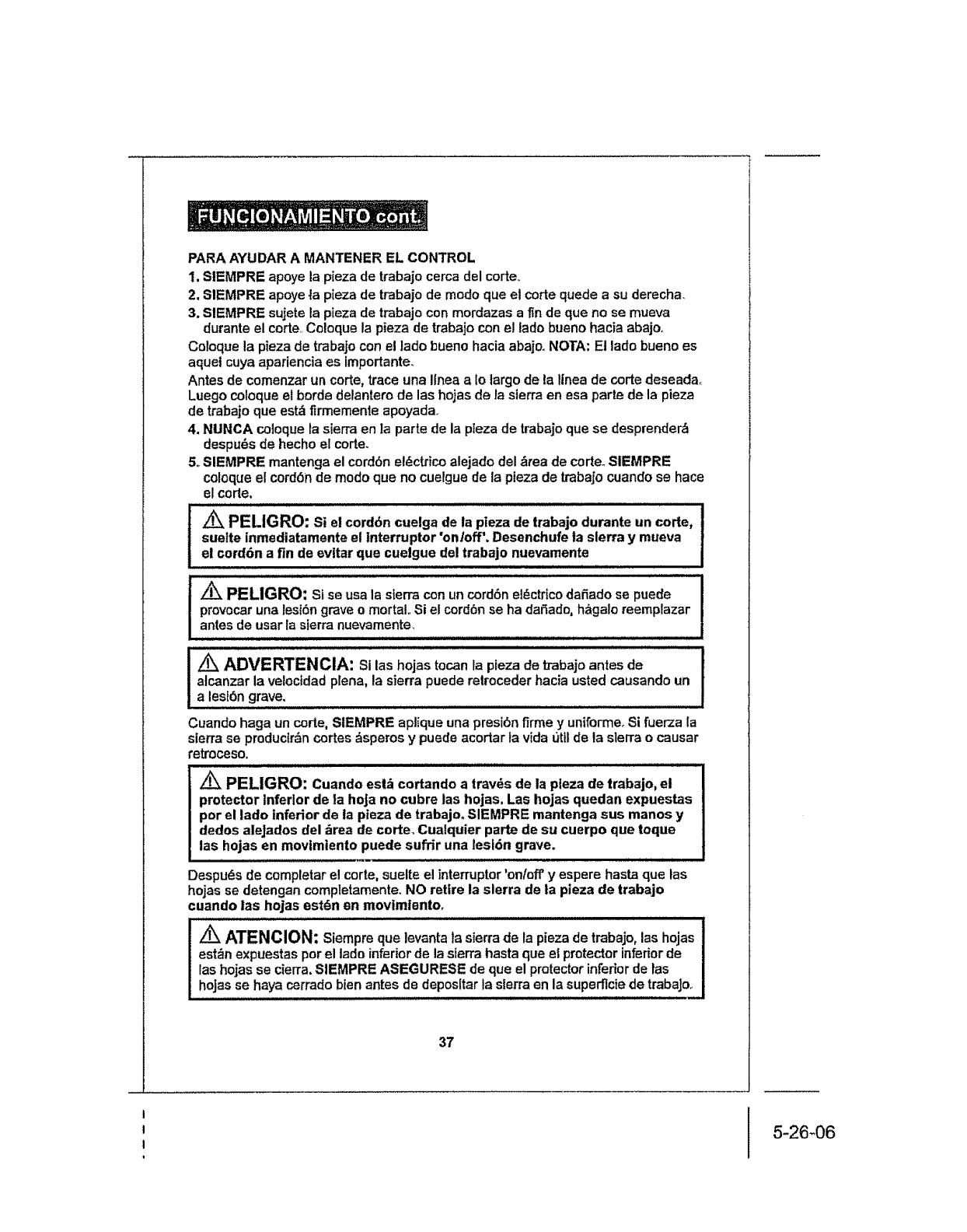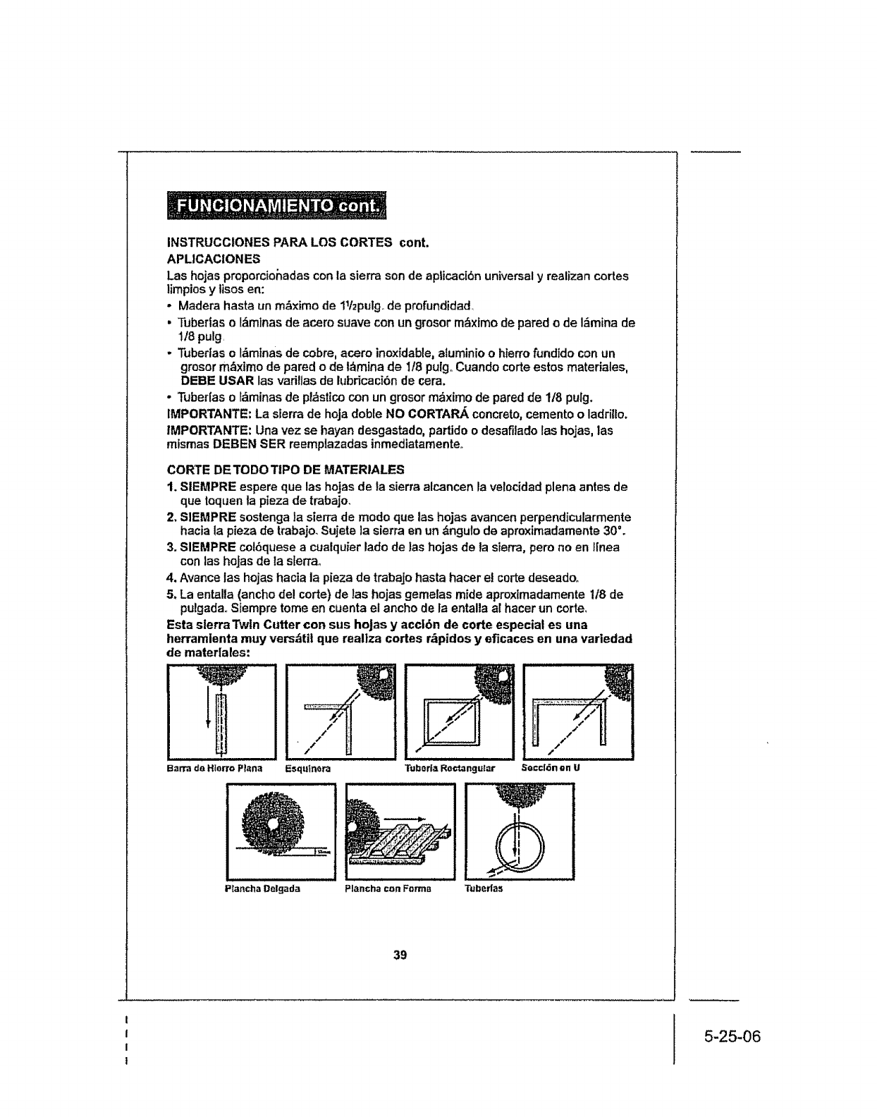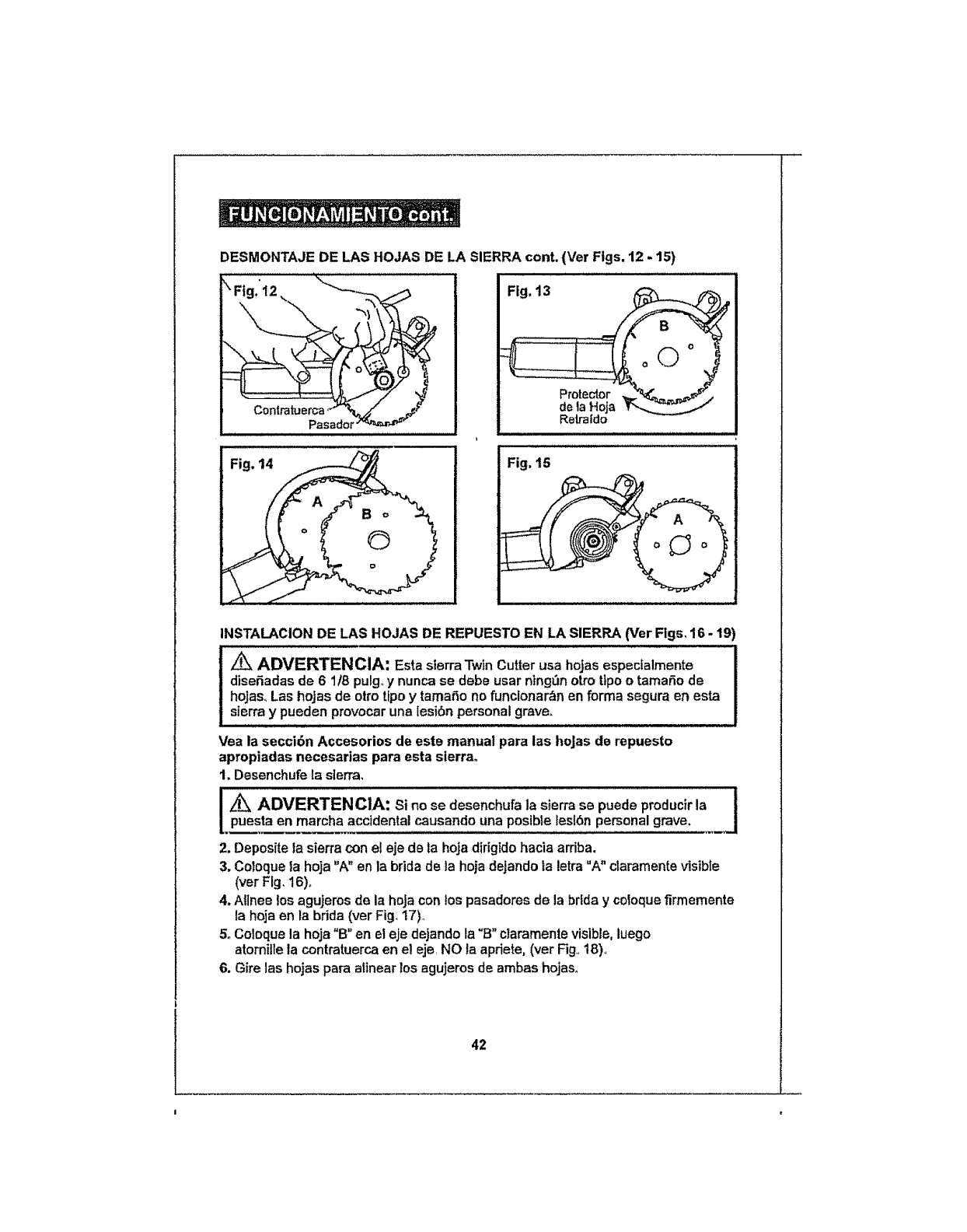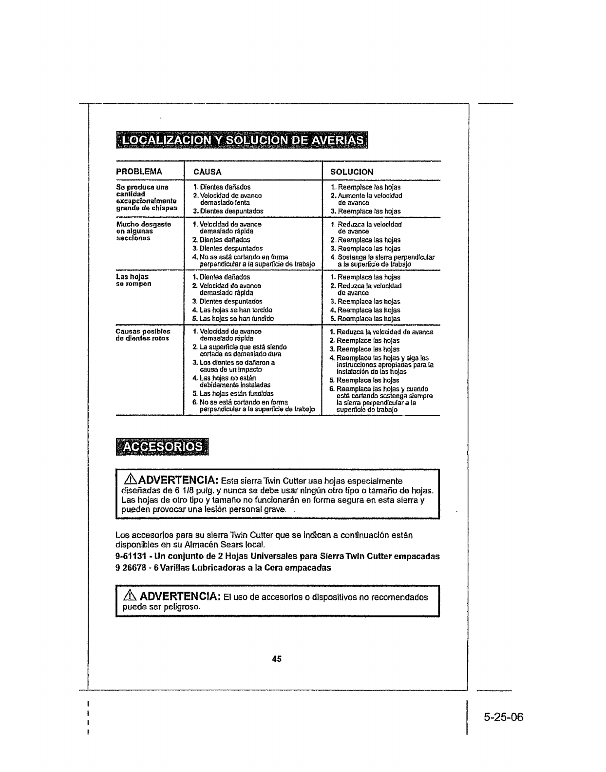 Las hojas de otro tipo y tamaSo no funcionardn en forma segura en esta sierra y