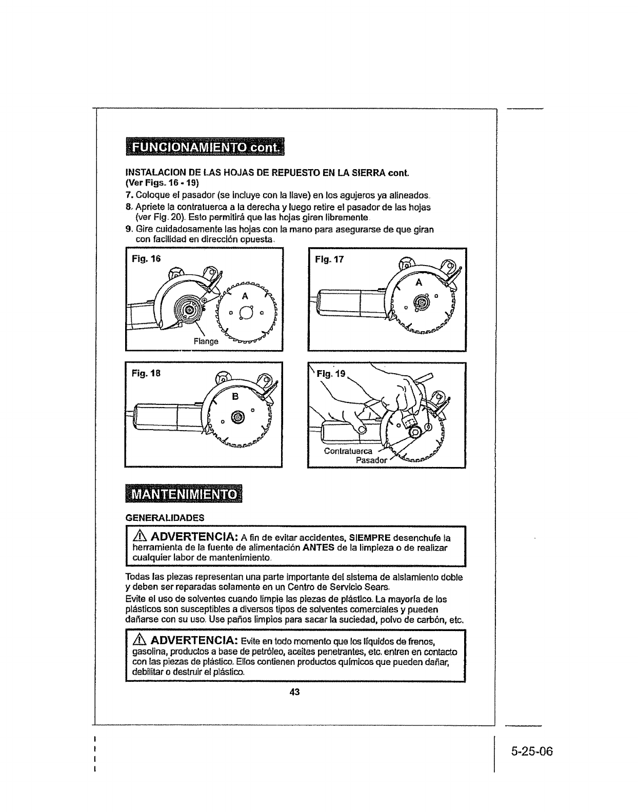 diseSadas de 6 1/8 puig. ynunca se debe usar nIngt3notro tipo o tamaSo de hojaso