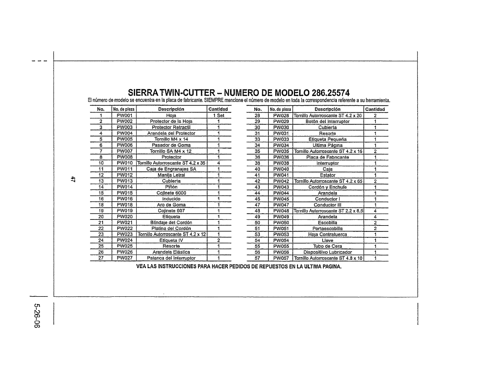 SIERRA TWIN-CUTTER- NUMERO DE MODELO 286.25574
