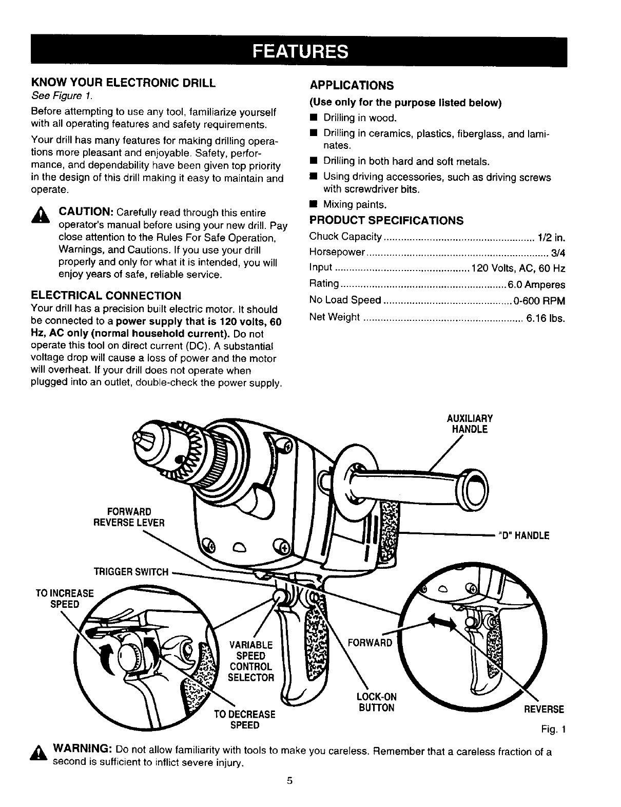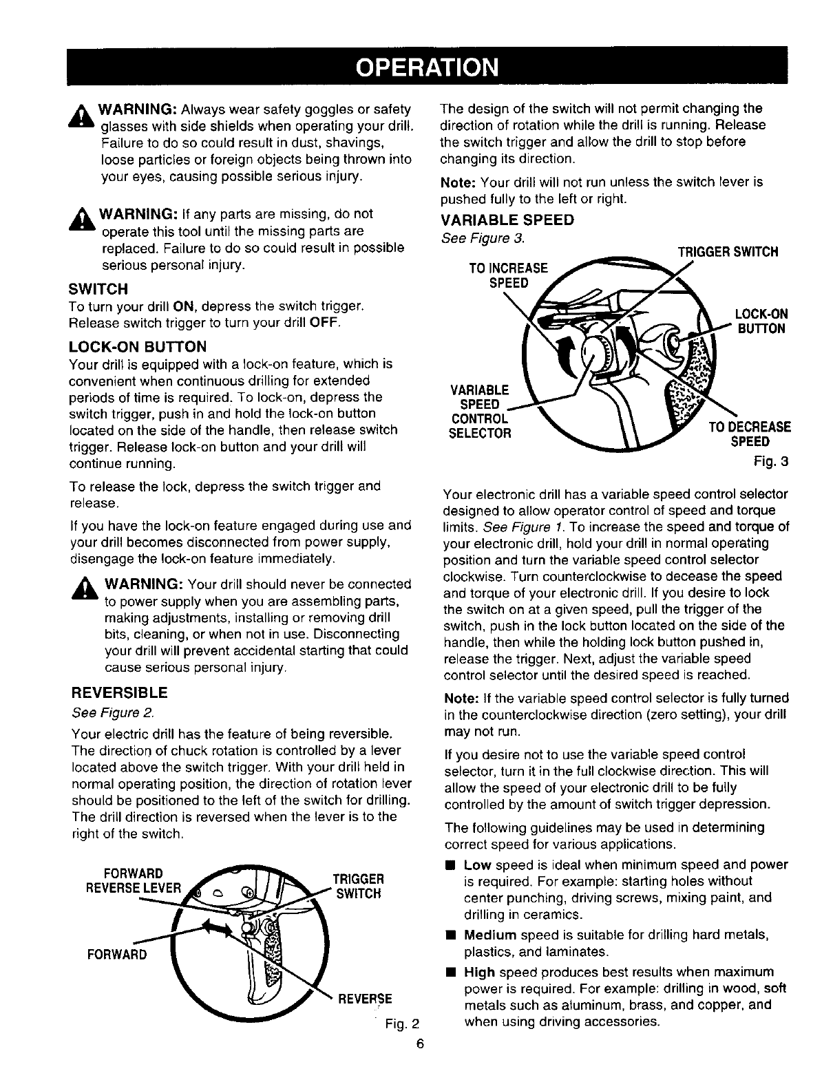 Craftsman 315101120 User Manual ELECTRONIC DRILL Manuals And Guides L0204028