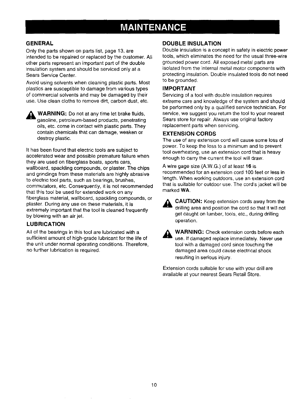 WARRANTY SERVICE IS AVAILABLE BY SIMPLY RETURNING THE TOOL TO THE NEAREST SEARS STORE