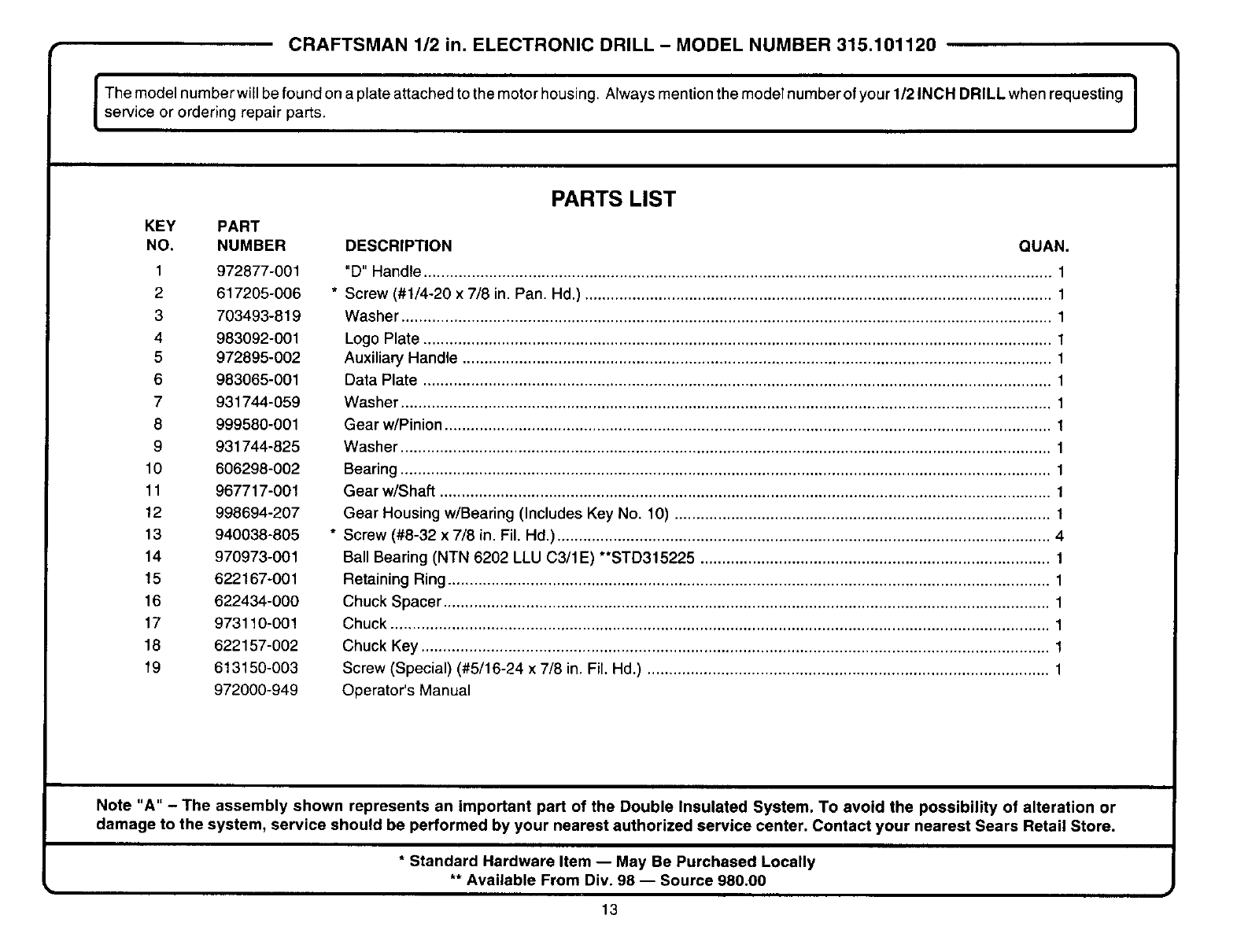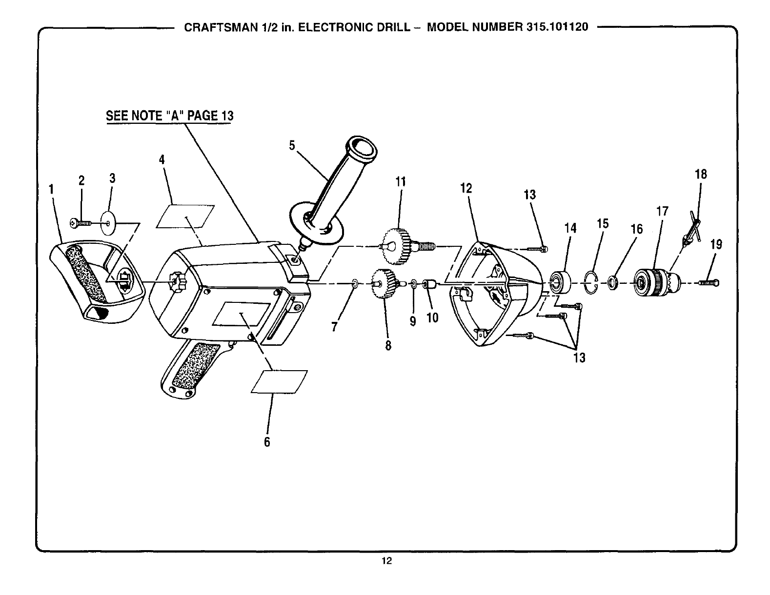 CRAFTSMAN 1/2 in. ELECTRONIC DRILL - MODEL NUMBER 315.101120