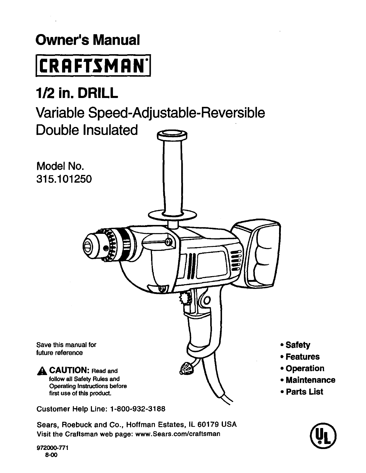 User Manual: Craftsman 315101250 315101250 CRAFTSMAN Drill Reversing - Manuals and Guides View the owners manual for your CRAFTSMAN Drill Reversing #315101250. Home:Tool Parts:Craftsman Parts:Craftsman Drill Reversing Manual
