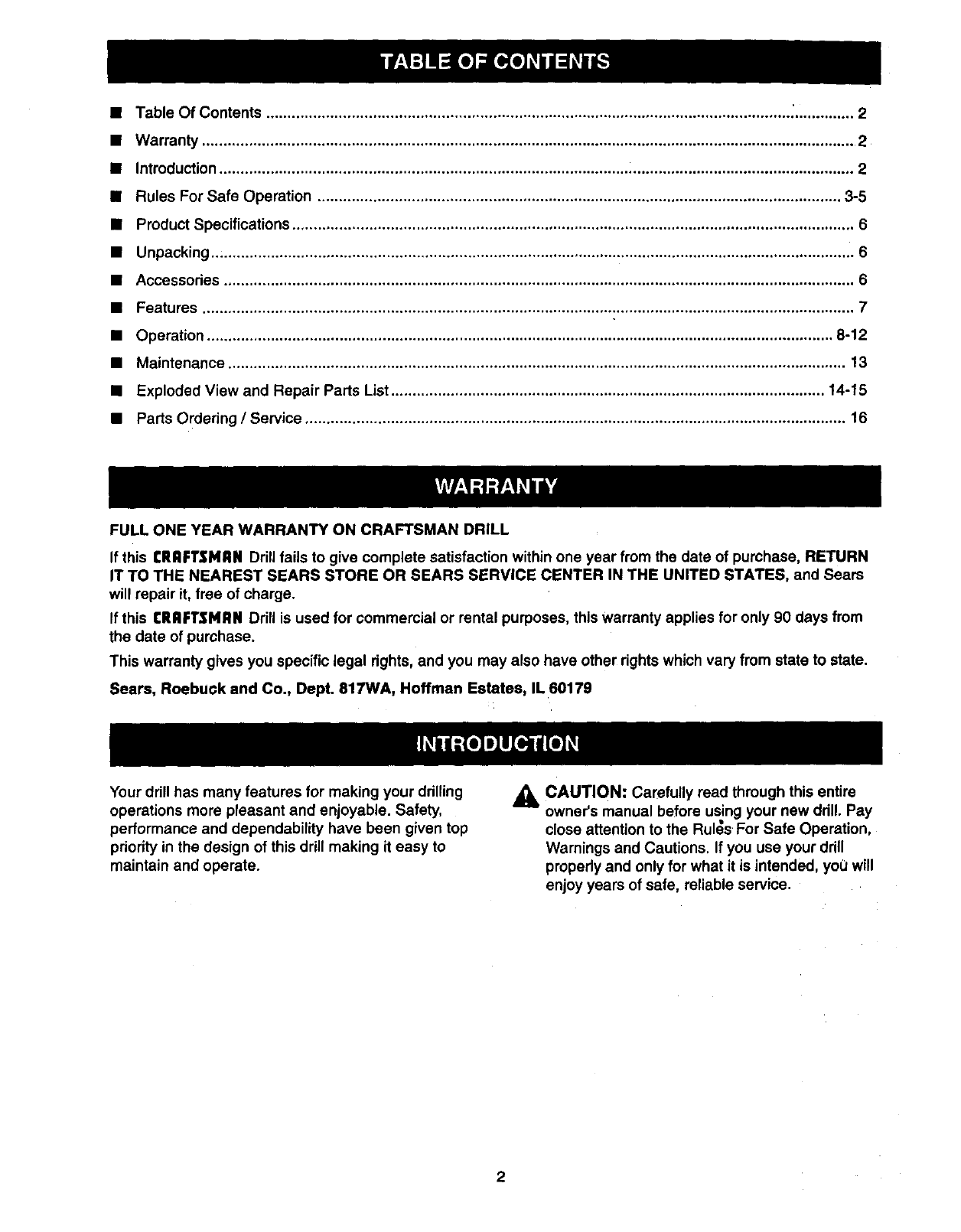 FULL ONE YEAR WARRANTY ON CRAFTSMAN DRILL