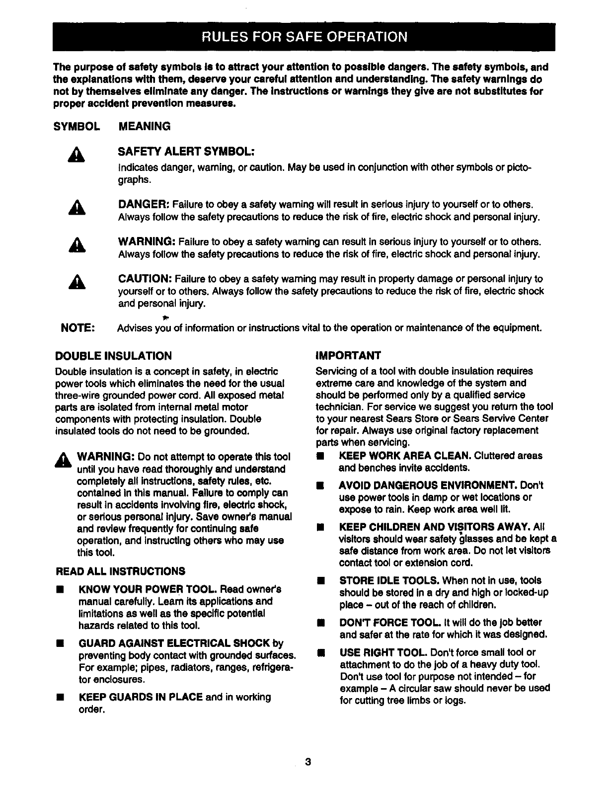 KNOW YOUR POWE R TOOL. Read owner's