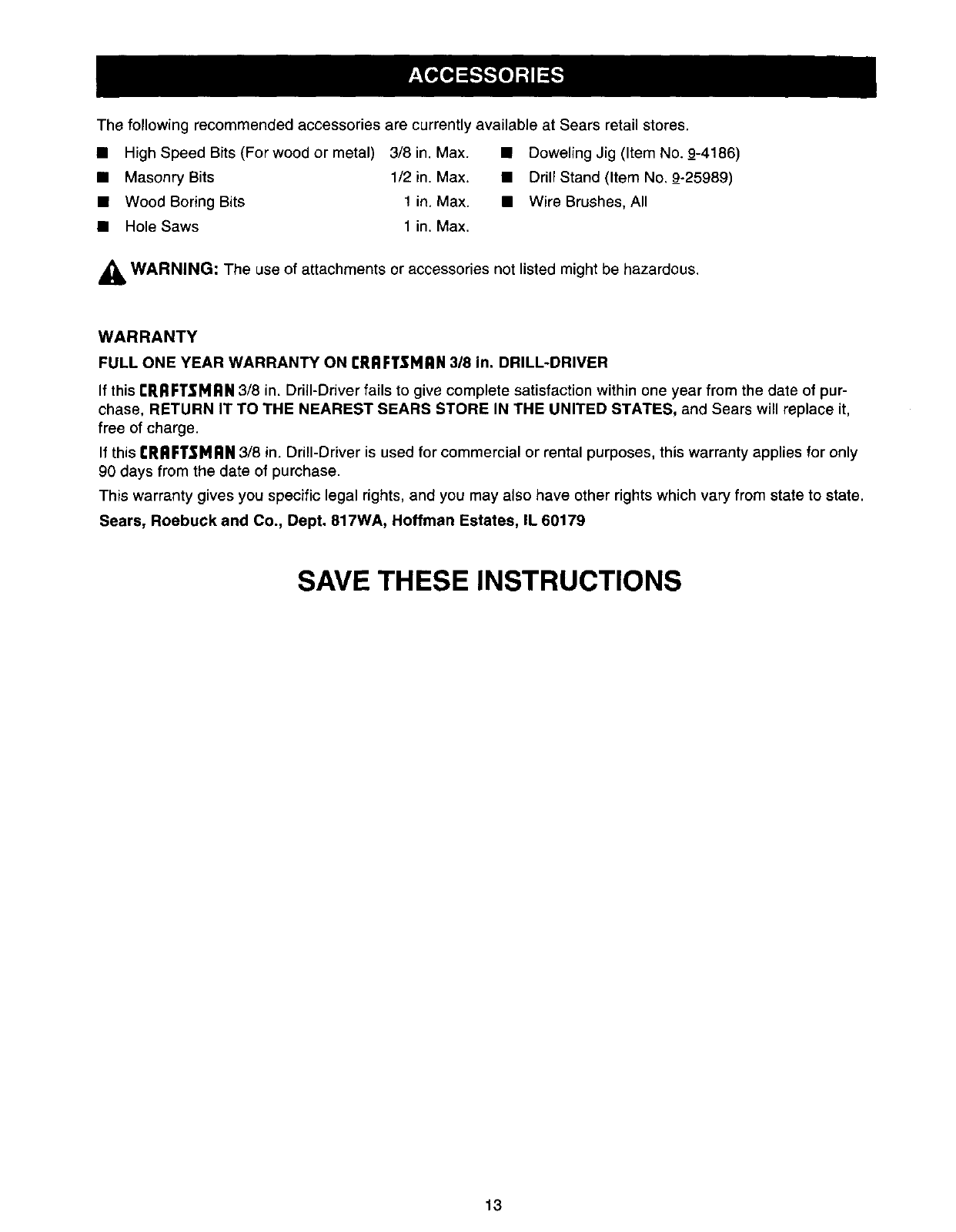 Craftsman 315101300 User Manual DRILL DRIVER Manuals And Guides L0110166