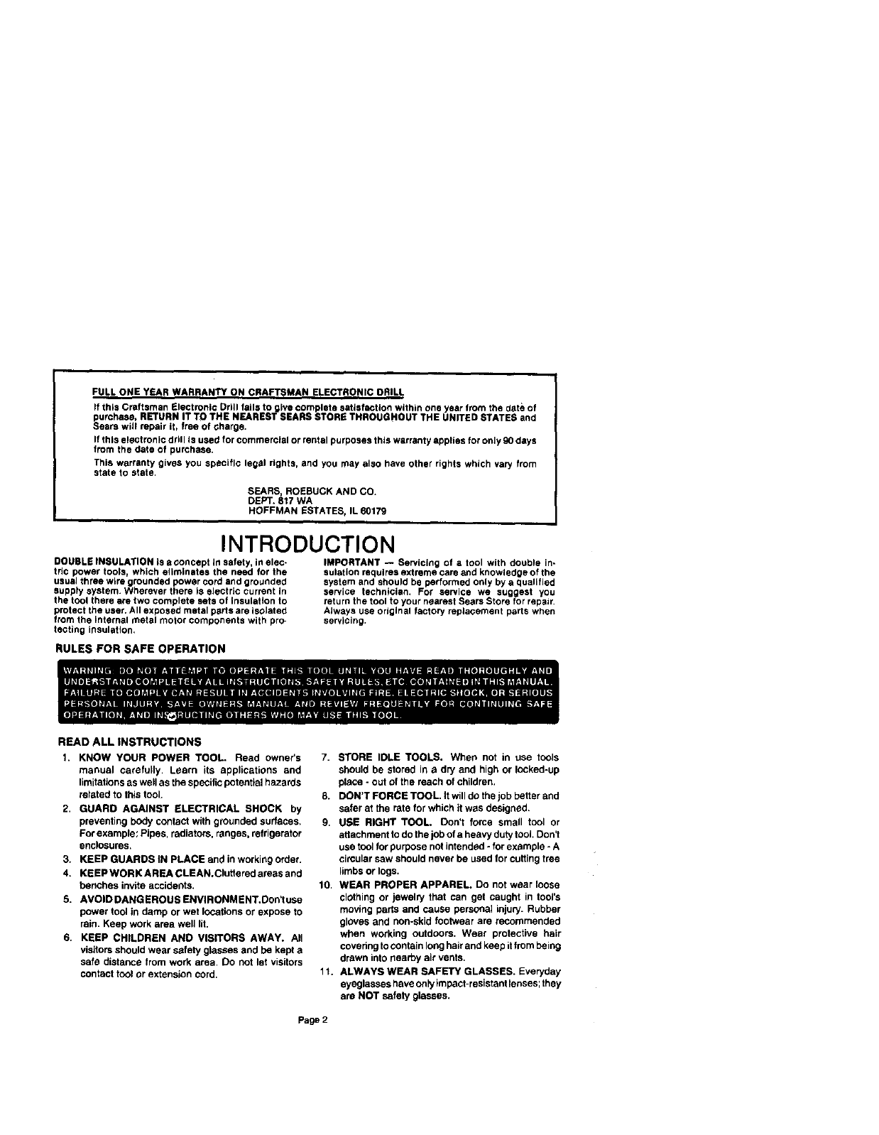 If this Craftsman Electronic Drill fails to give complete satisfaction within one year from the date of