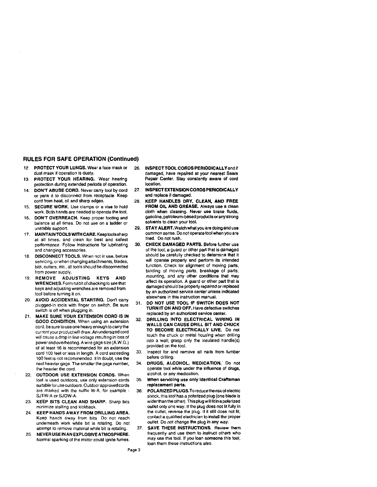 RULES FOR SAFE OPERATION (Continued)