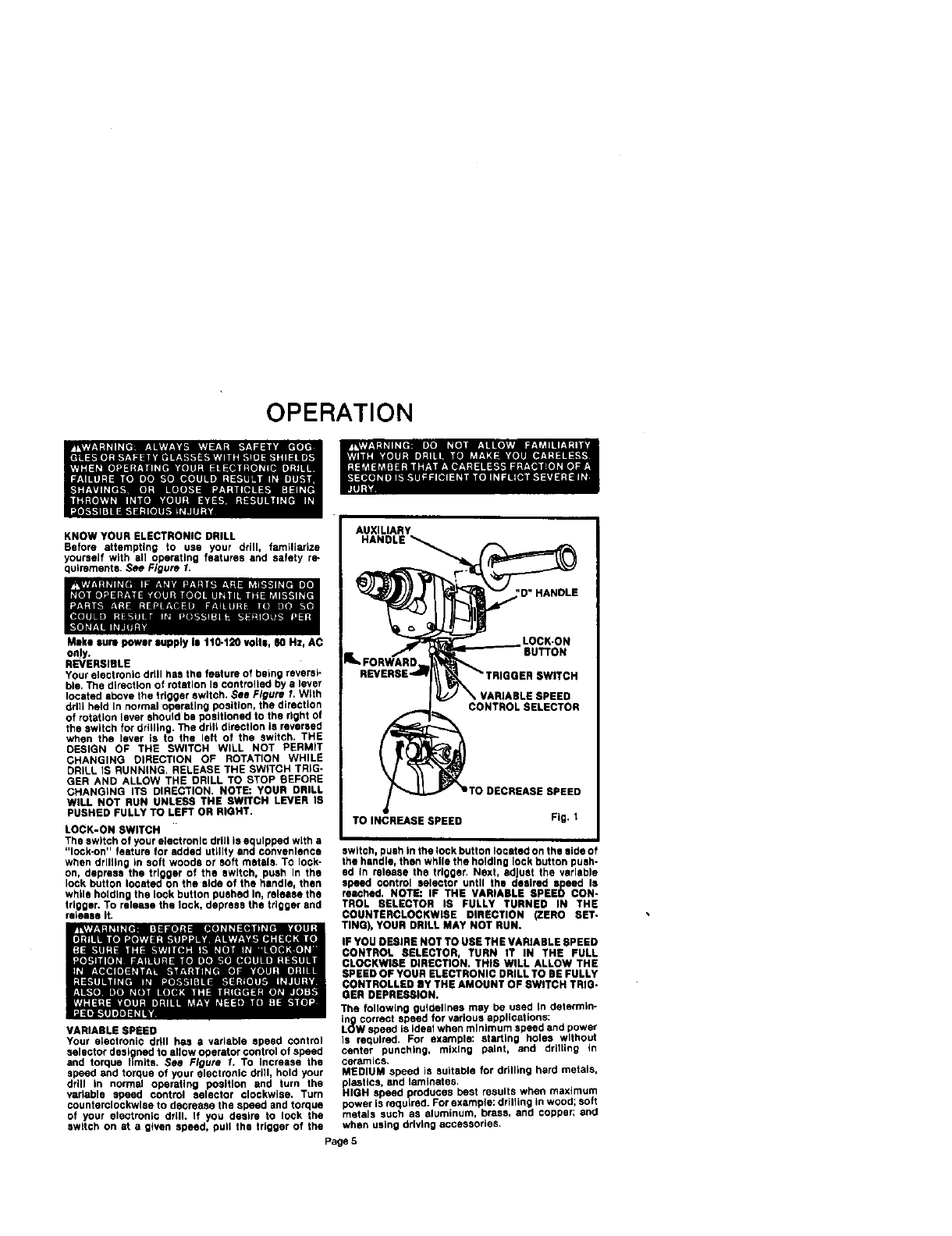 Craftsman 315105050 User Manual 1/2 ELECTRONIC DRILL Manuals And Guides L0012019