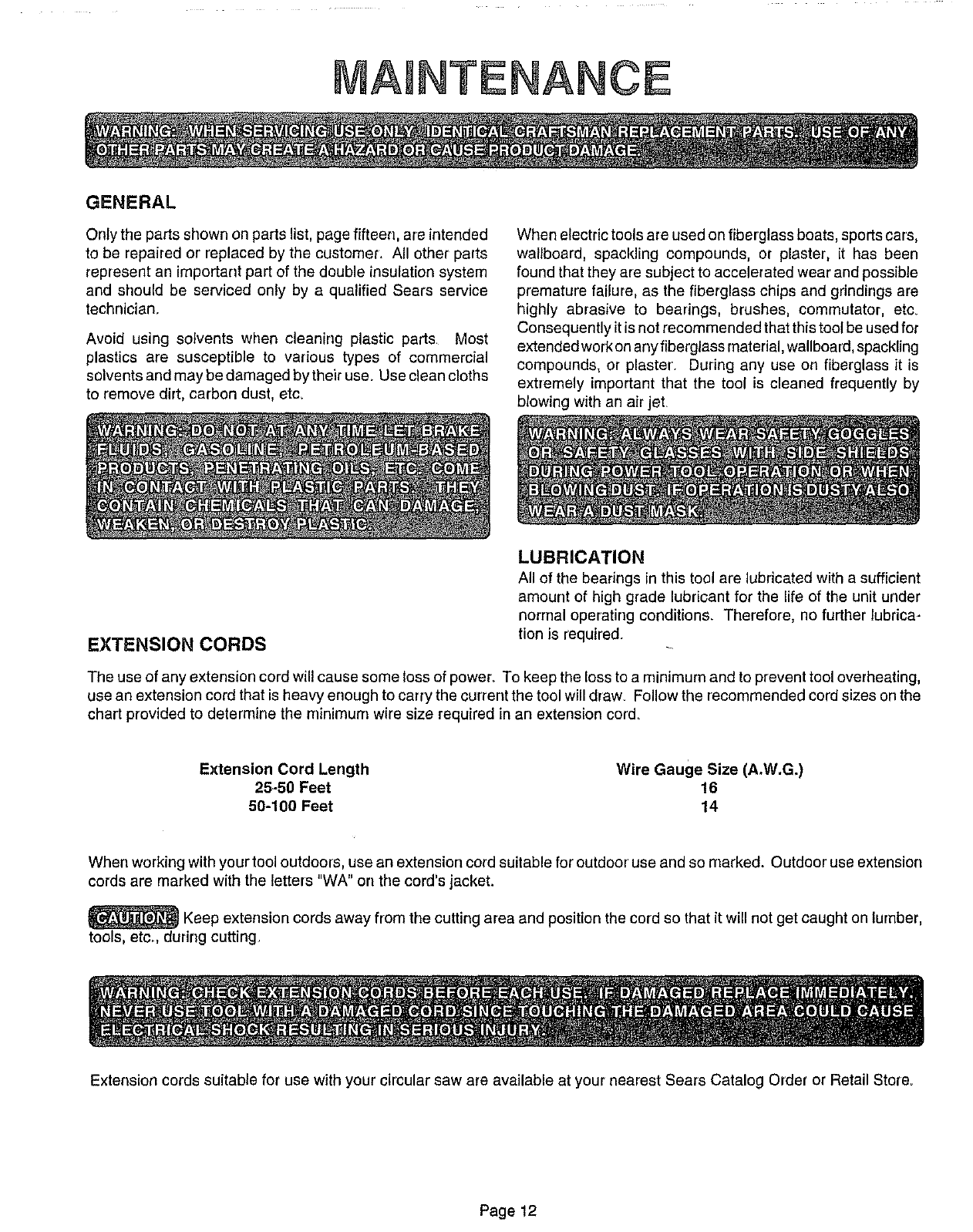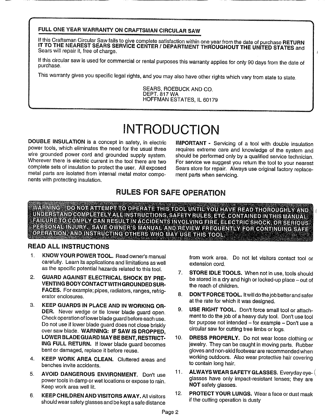 FULL ONE YEAR WARRANTY ON CRAFTSMAN CIRCULAR SAW