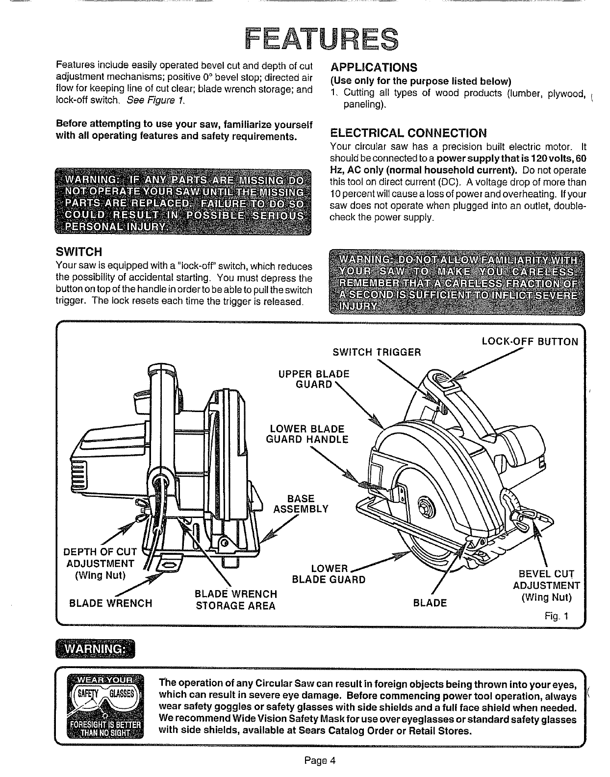 If this Craftsman Circular Saw fails to give complete satisfaction within one year from the date of purchase RETURN