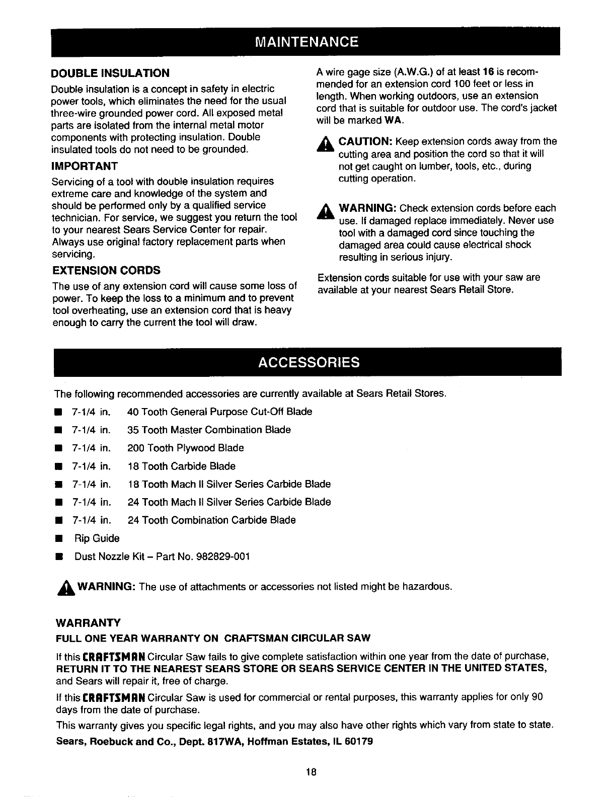 CRAFTSMAN Saw Circular Manual L0205009 CRAFTSMAN Saw Circular Owner's Manual, CRAFTSMAN Saw Circular installation guides