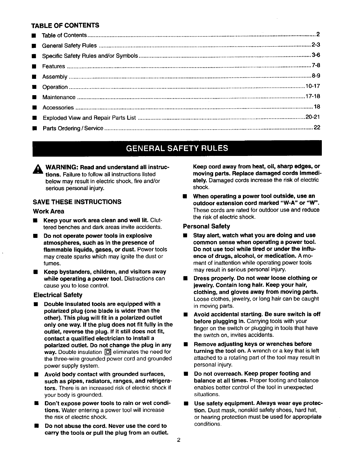 •Exploded View and Repair Parts List ......................................................................................................... 20-21