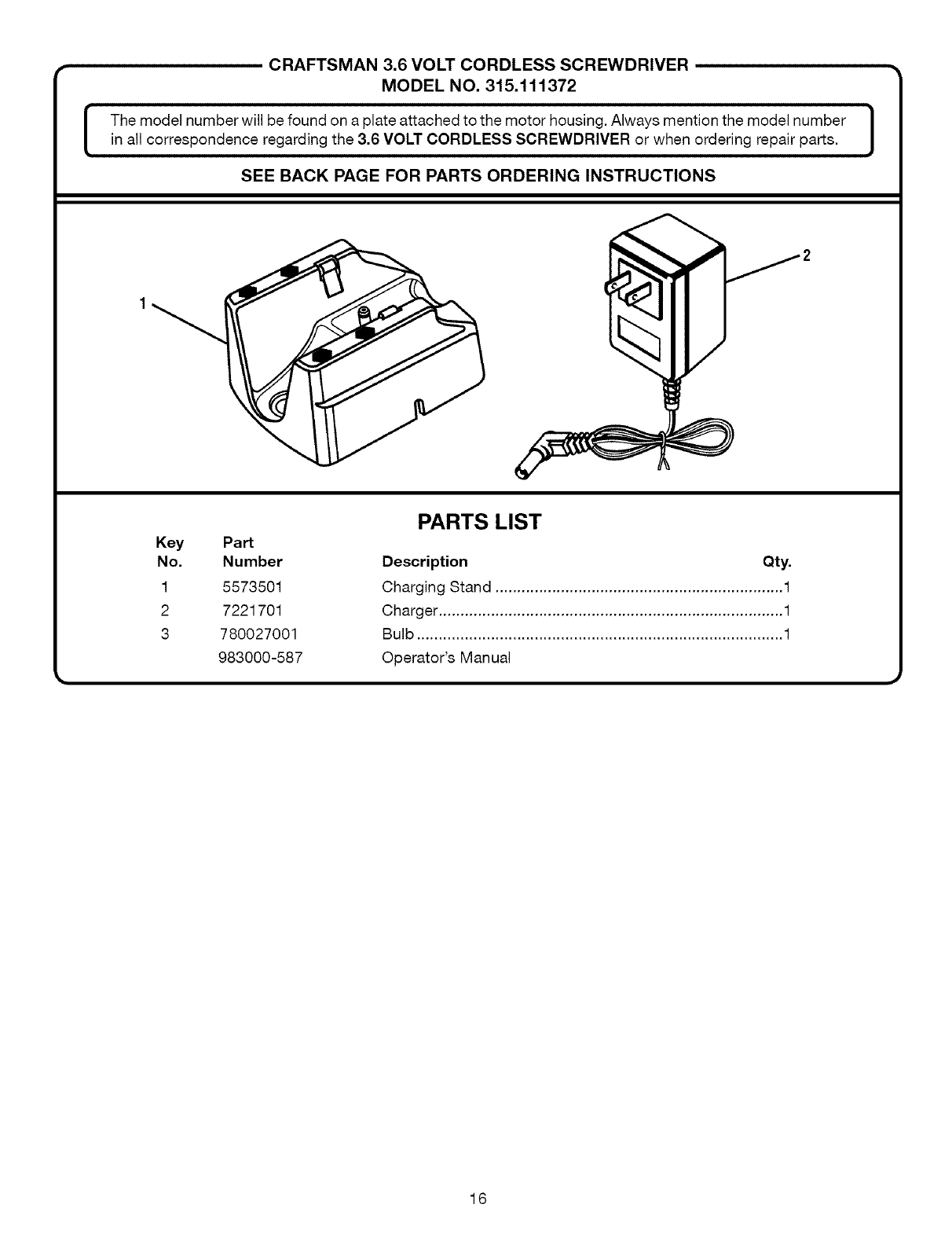 User Manual: Craftsman 315111372 315111372 CRAFTSMAN SCREWDRIVER - Manuals and Guides View the owners manual for your CRAFTSMAN SCREWDRIVER #315111372. Home:Tool Parts:Craftsman Parts:Craftsman SCREWDRIVER Manual