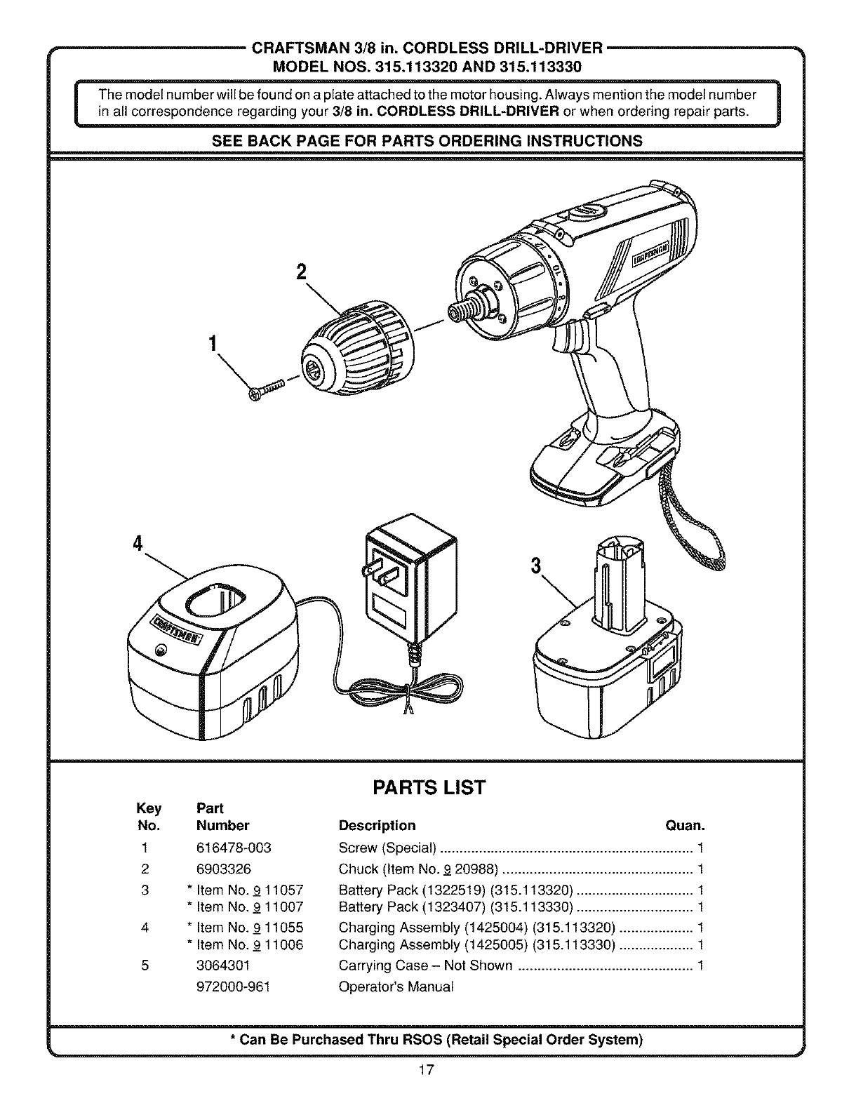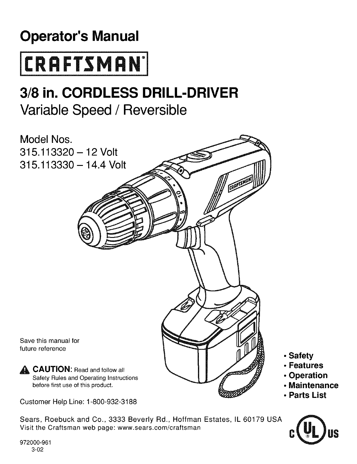 User Manual: Craftsman 315113320 315113320 CRAFTSMAN DRILL - Manuals and Guides View the owners manual for your CRAFTSMAN DRILL #315113320. Home:Tool Parts:Craftsman Parts:Craftsman DRILL Manual