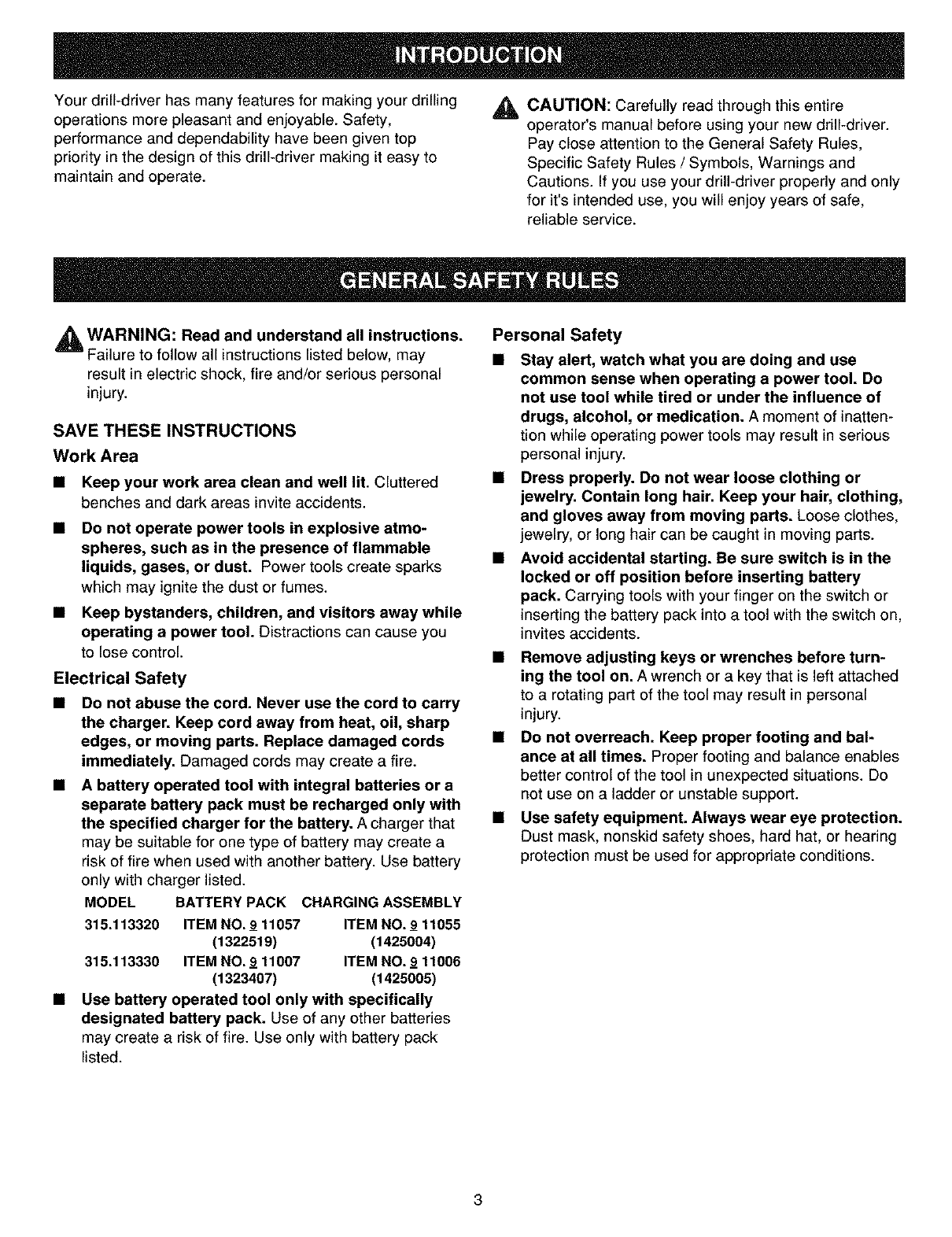 Craftsman 315113320 User Manual DRILL Manuals And Guides L0311050