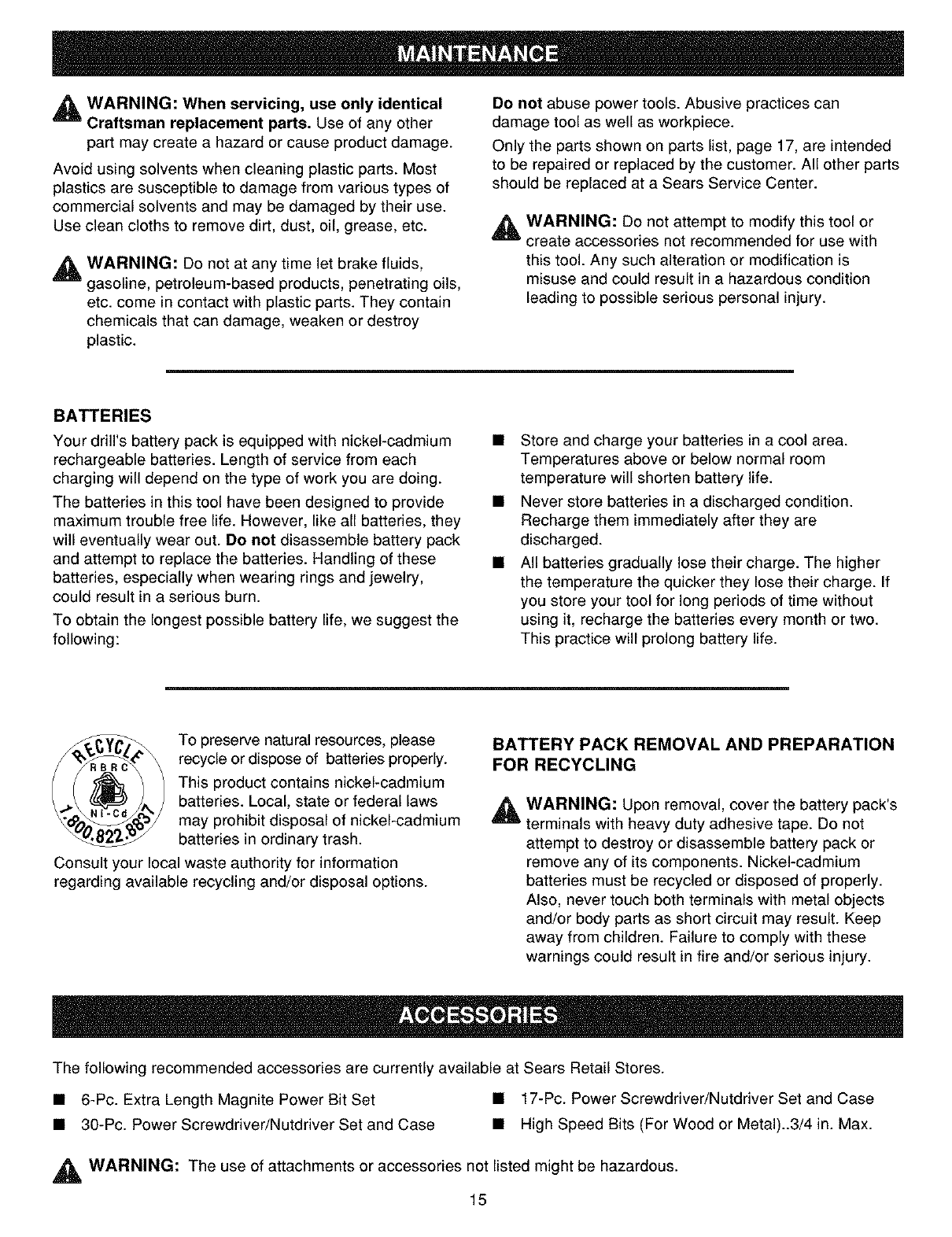 remove any of its components. Nickel-cadmium