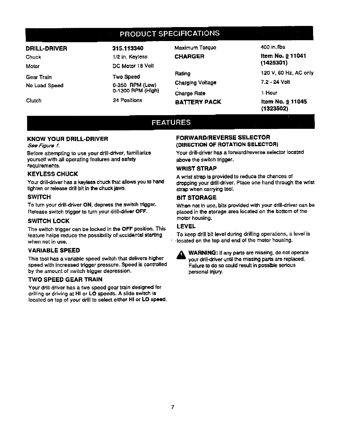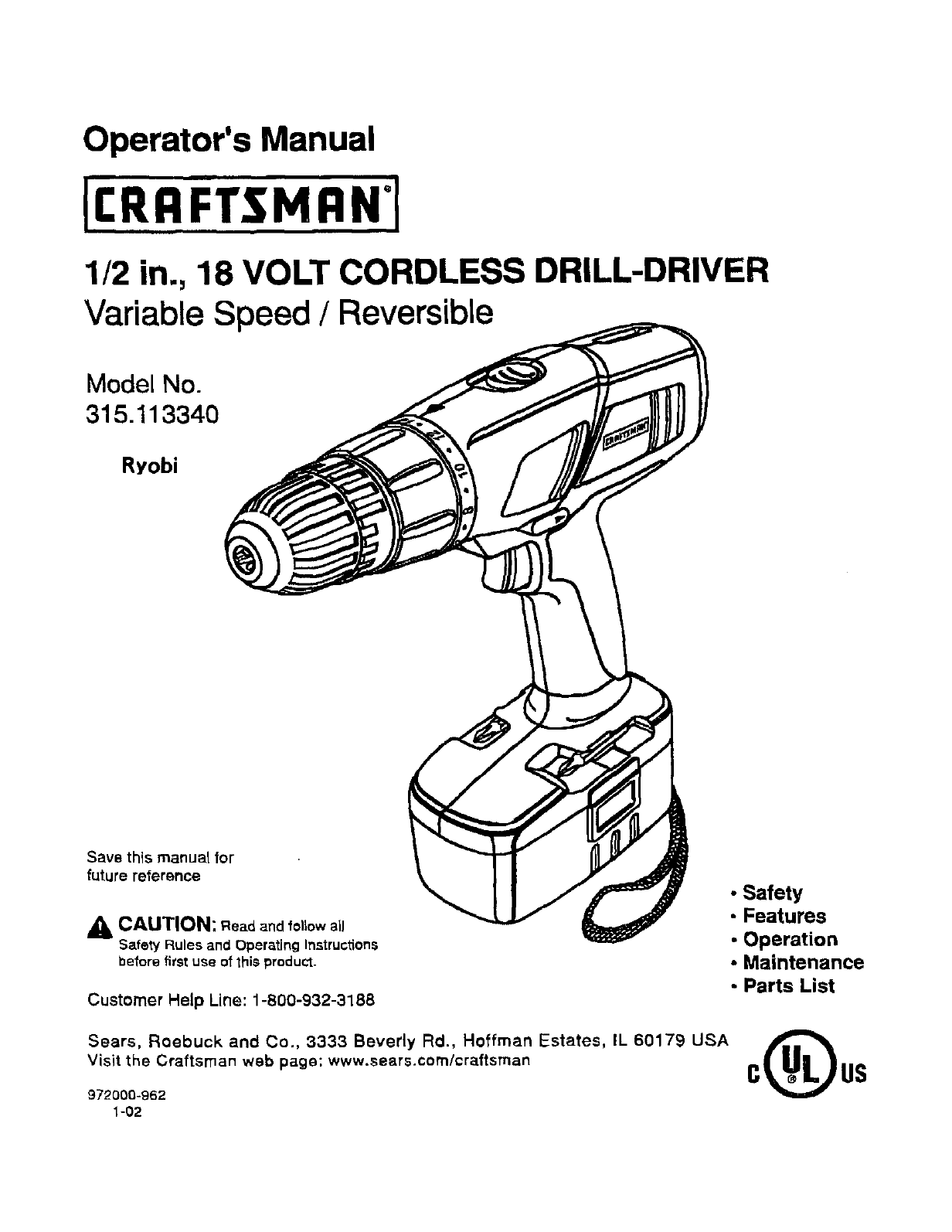 User Manual: Craftsman 315113340 315113340 CRAFTSMAN DRILL - Manuals and Guides View the owners manual for your CRAFTSMAN DRILL #315113340. Home:Tool Parts:Craftsman Parts:Craftsman DRILL Manual