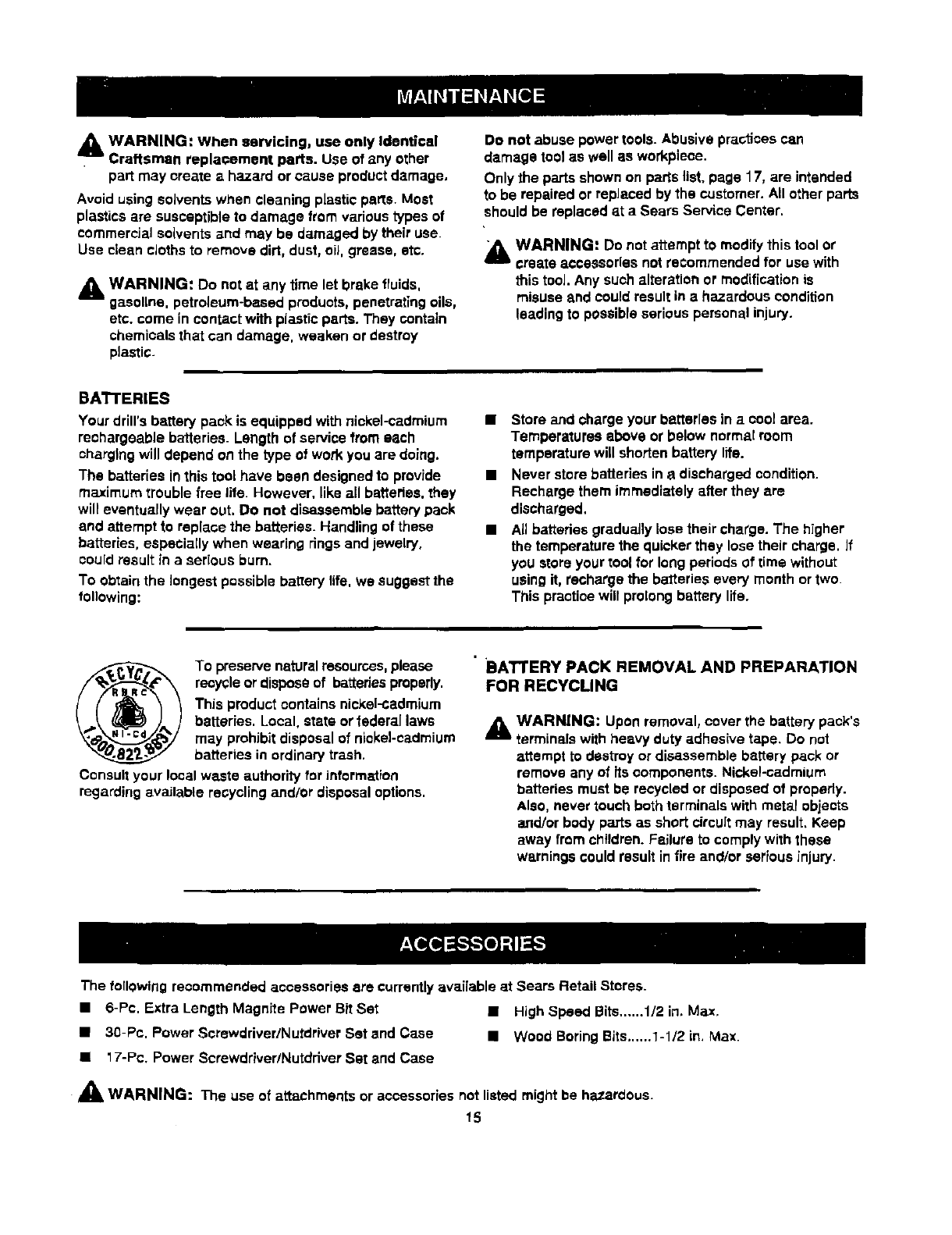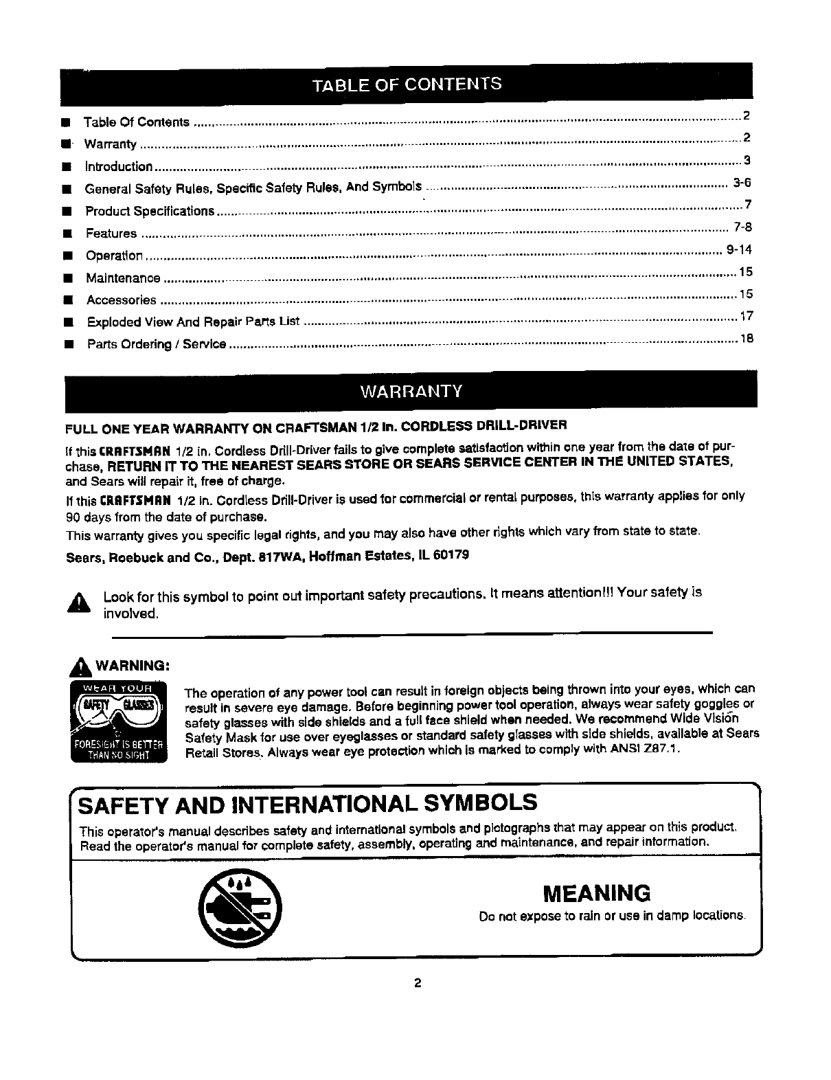 FULL ONE YEAR WARRANTY ON CRAFTSMAN 1/2 In. CORDLESS DRILL-DRIVER
