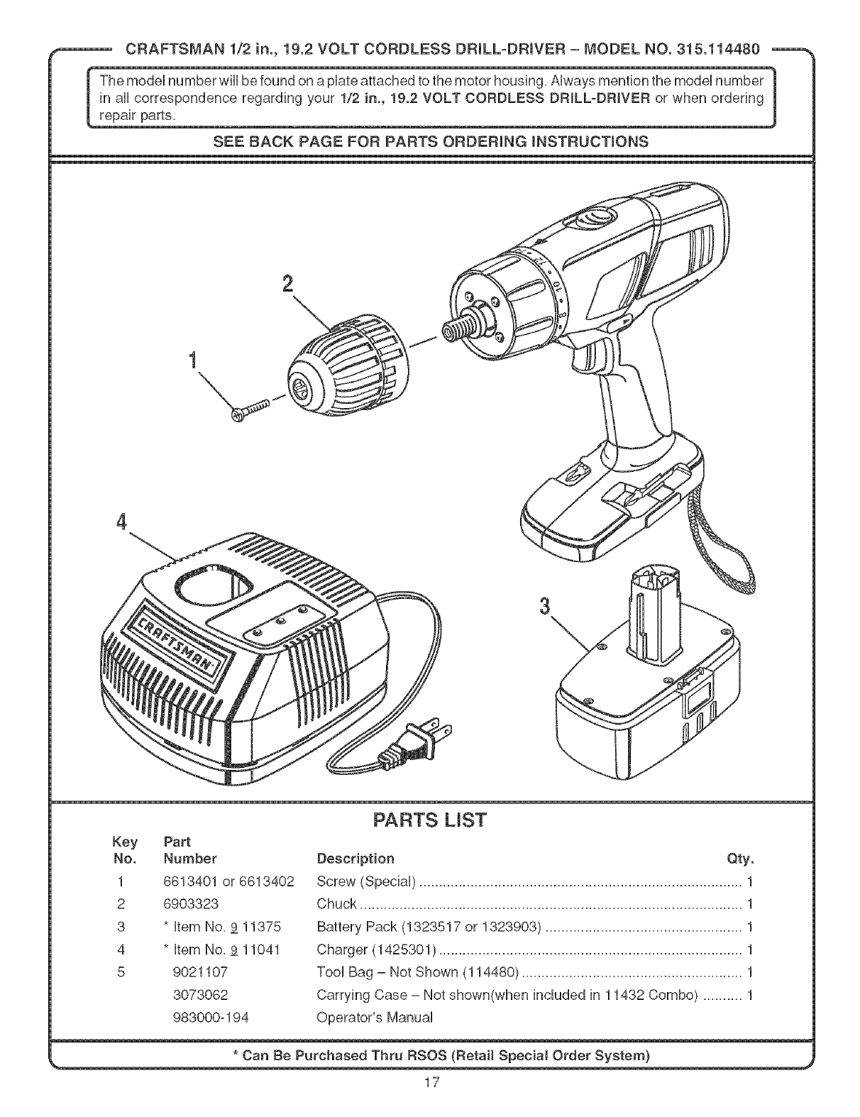 User Manual: Craftsman 315114480 315114480 CRAFTSMAN 1/2 CORDLESS DRILL - Manuals and Guides View the owners manual for your CRAFTSMAN 1/2 CORDLESS DRILL #315114480. Home:Tool Parts:Craftsman Parts:Craftsman 1/2 CORDLESS DRILL Manual