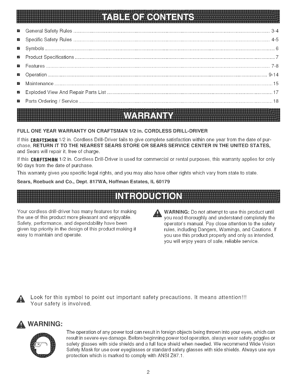 FULL ONE YEAR WARRANTY ON CRAFTSMAN 1/2 in. CORDLESS DRILL-DRIVER
