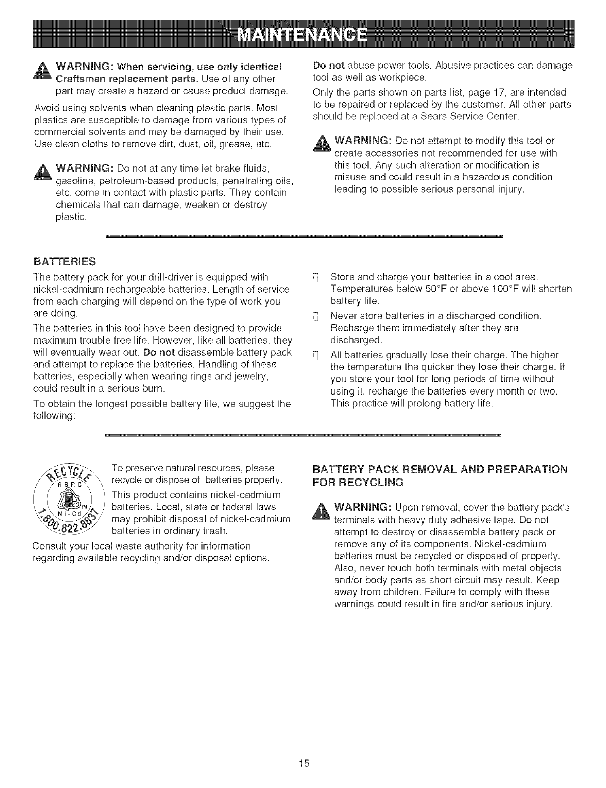 nickel-cadmium rechargeabie batteries. Length of service Temperatures below 50°F or above 100°F wii[ shorten