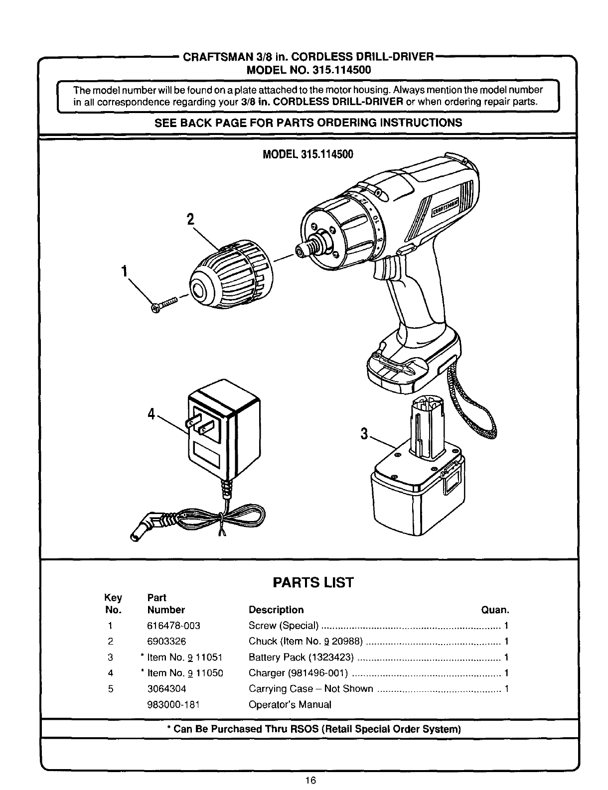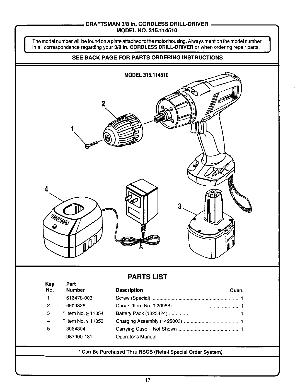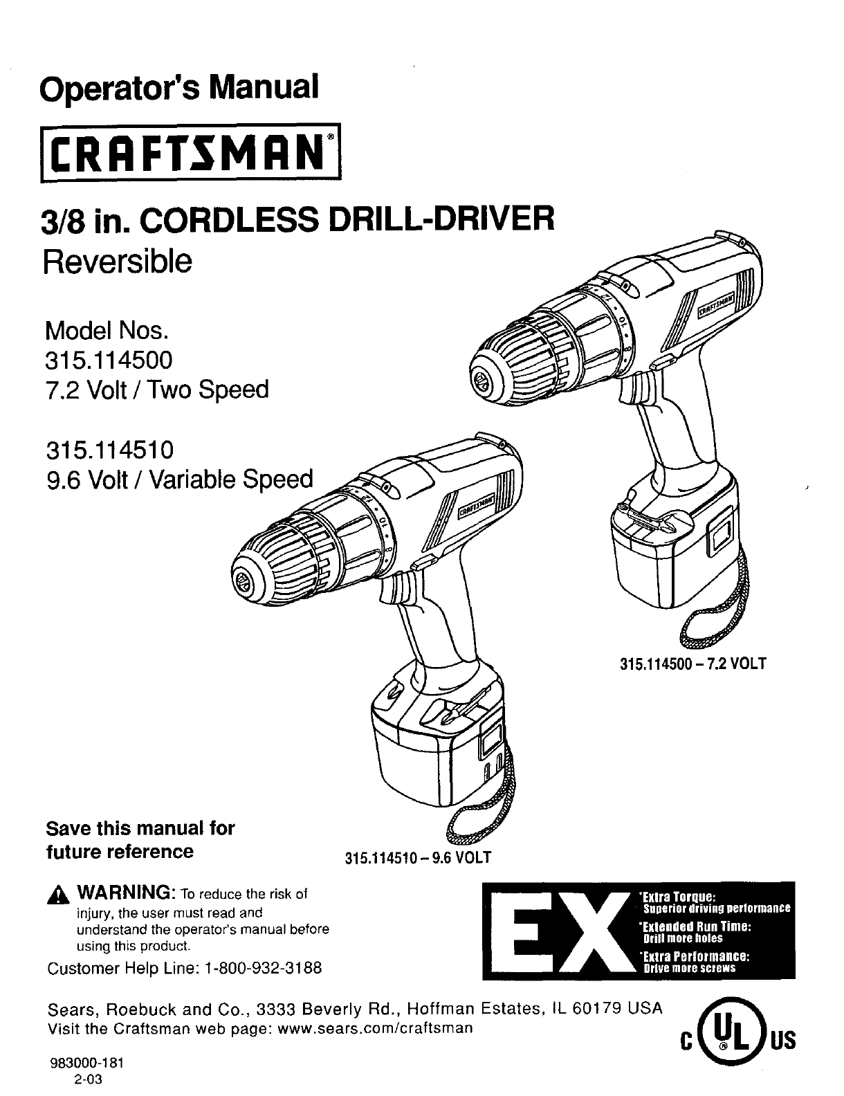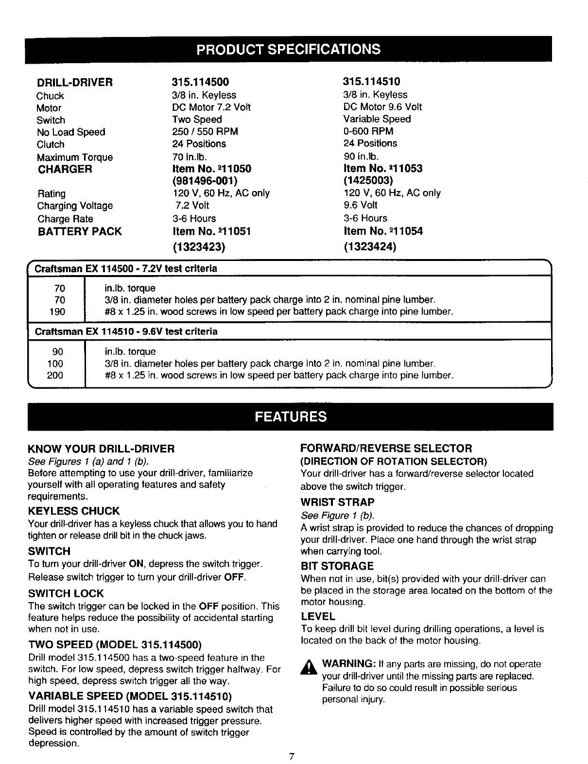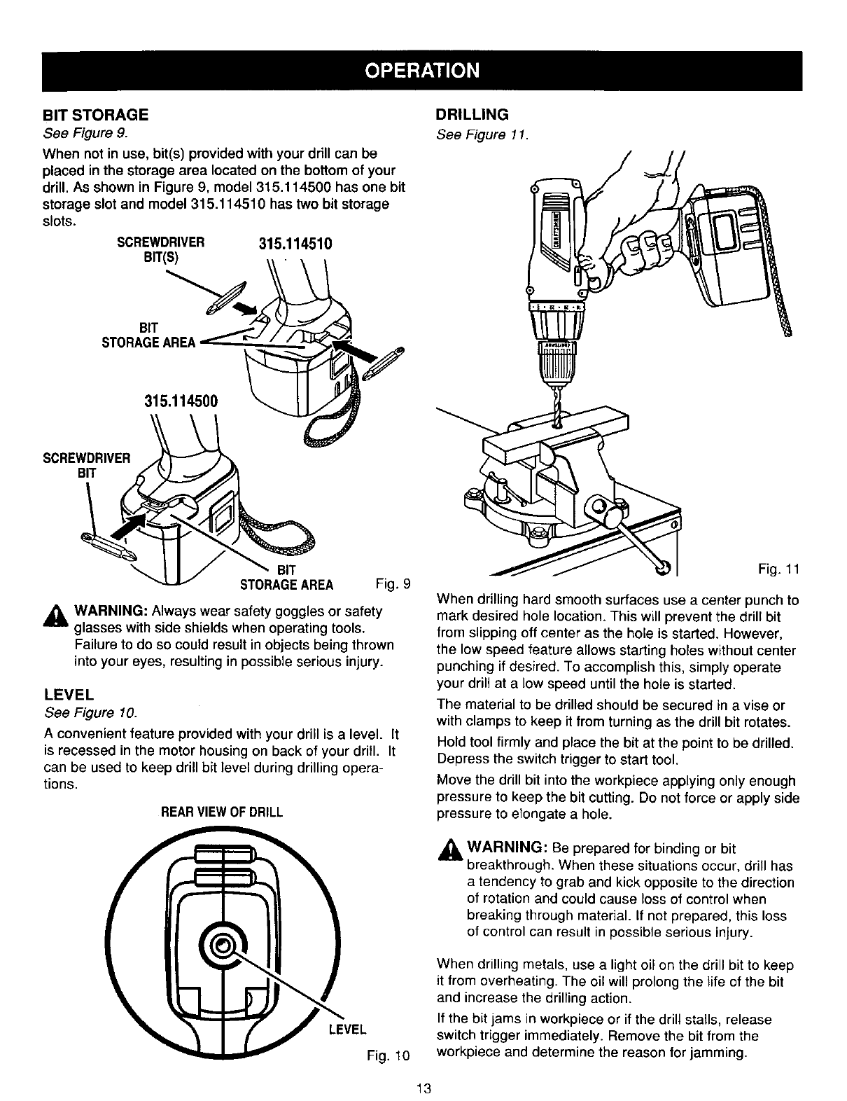 User Manual: Craftsman 315114500 315114500 CRAFTSMAN DRILL - Manuals and Guides View the owners manual for your CRAFTSMAN DRILL #315114500. Home:Tool Parts:Craftsman Parts:Craftsman DRILL Manual