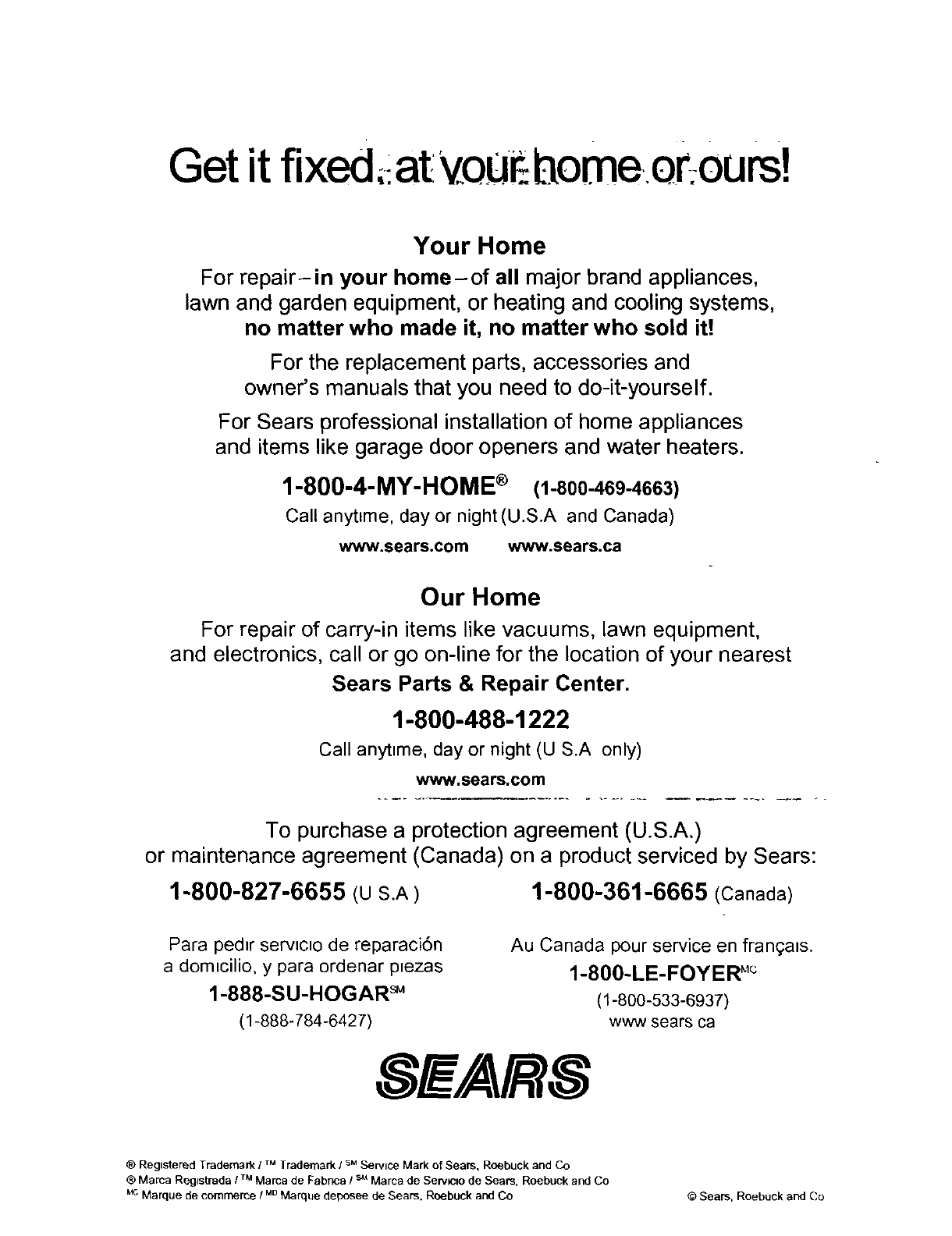 ® Marca Registrada IMarca de F_br_c_ !Marca de ServK:lo de Sears, Roebuck and Co