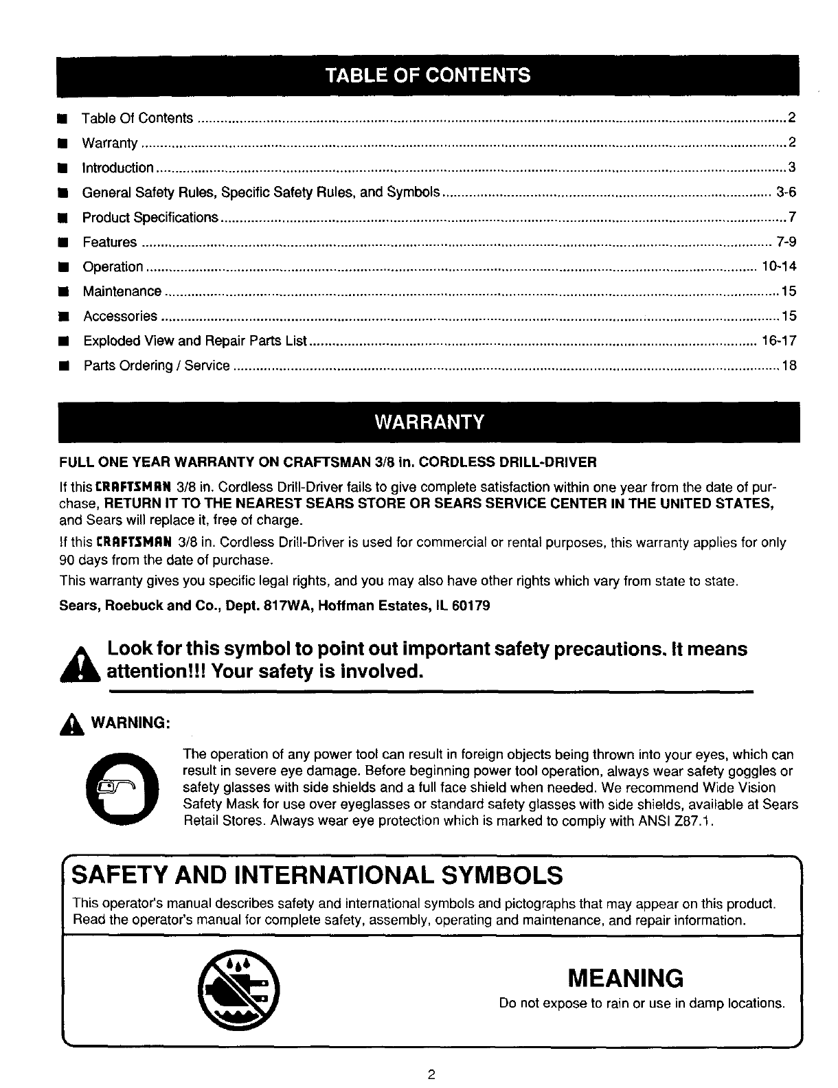 IThe model numberwill be found on a plate attached to the motor housing. Always mention the model numberin all correspondence regarding your 3/8 in, CORDLESS DRILL-DRIVER or when ordering repair parts.