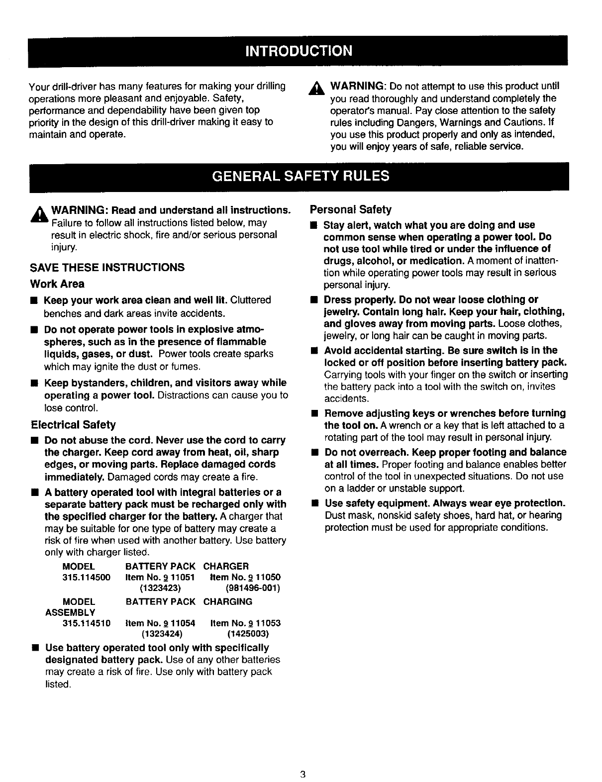 Craftsman 315114500 User Manual DRILL Manuals And Guides L0309495