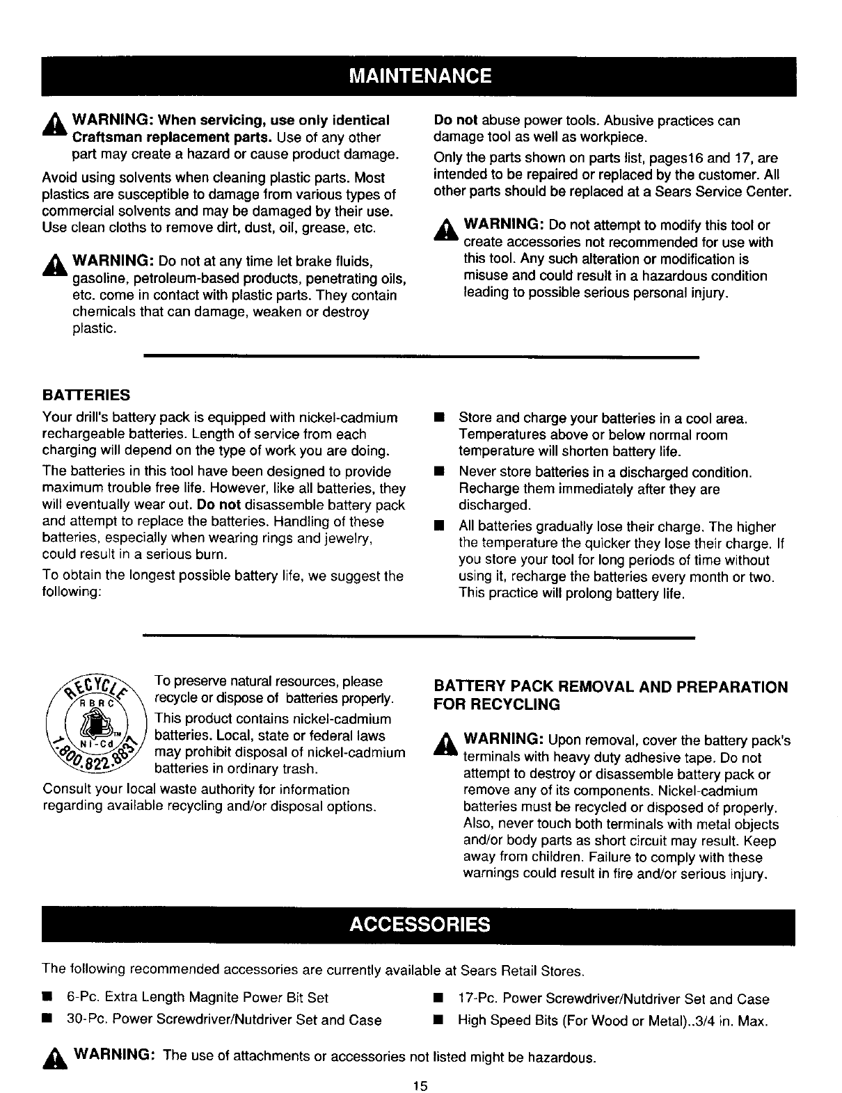 remove any of its components. Nickel-cadmium