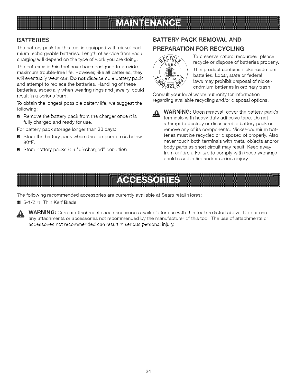 WARNING: Current attachments and accessories available for use with this too! are listed above. Do not use