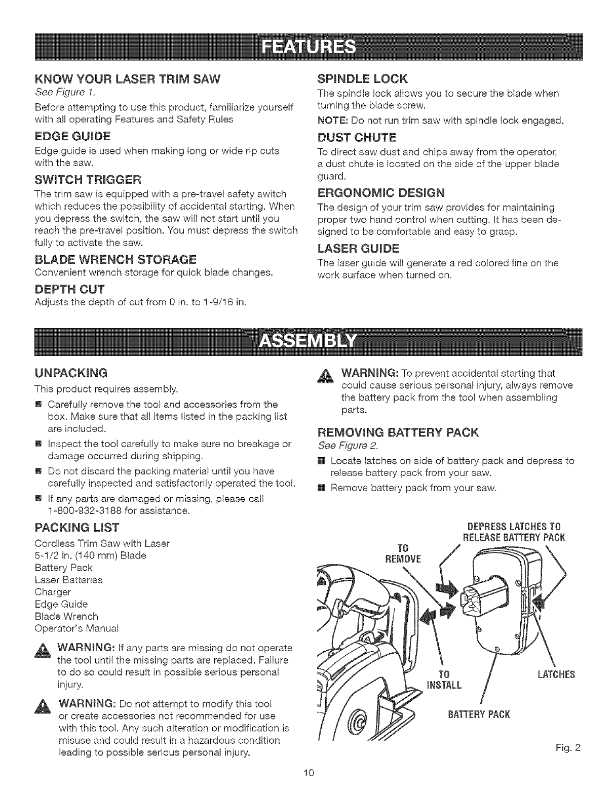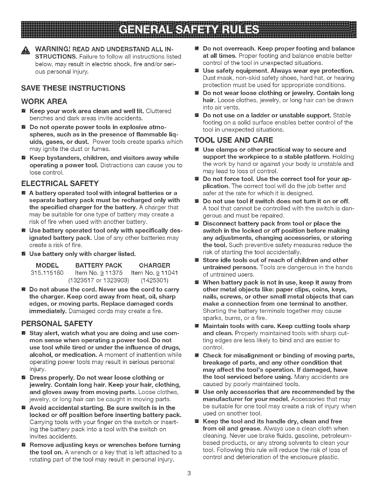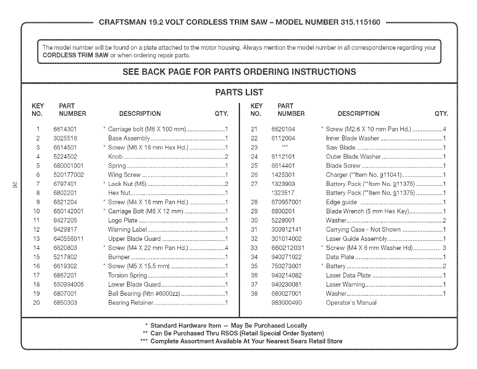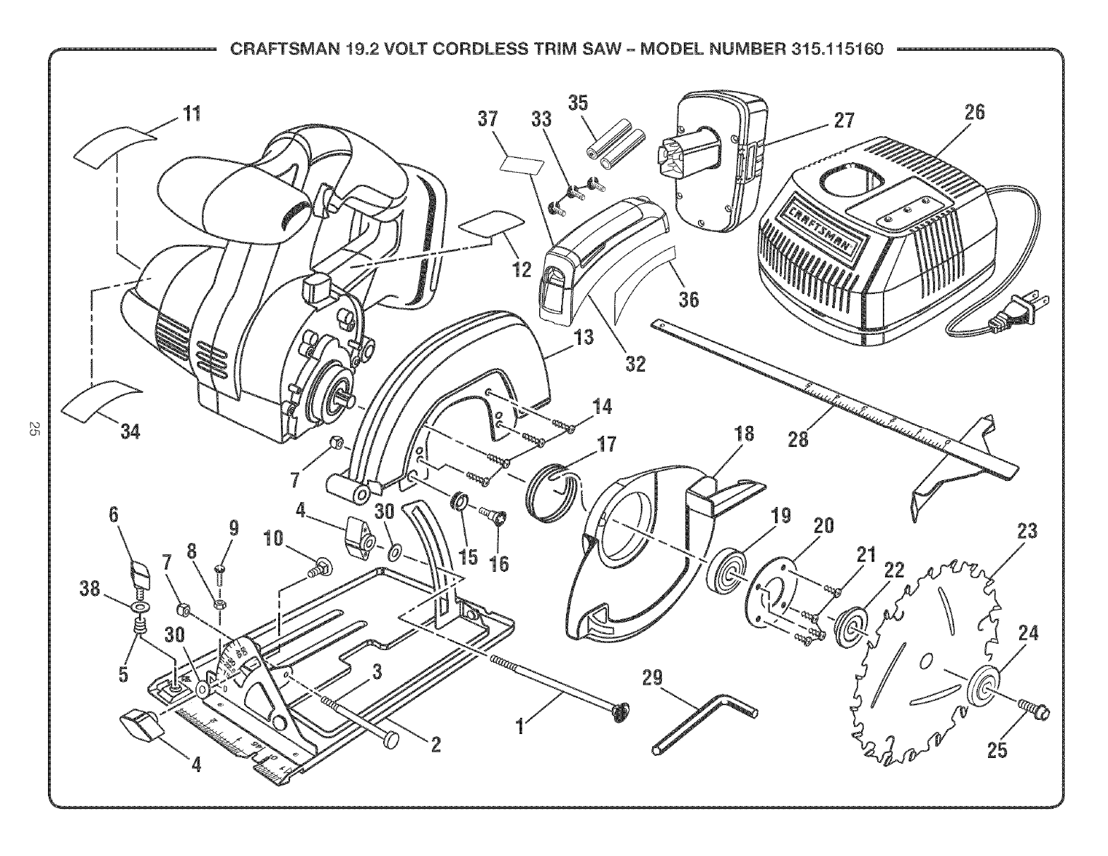 CRAFTSMAN 19.2 VOLT CORDLESS TR_M SAW - MODEL NUMBER 315.115160