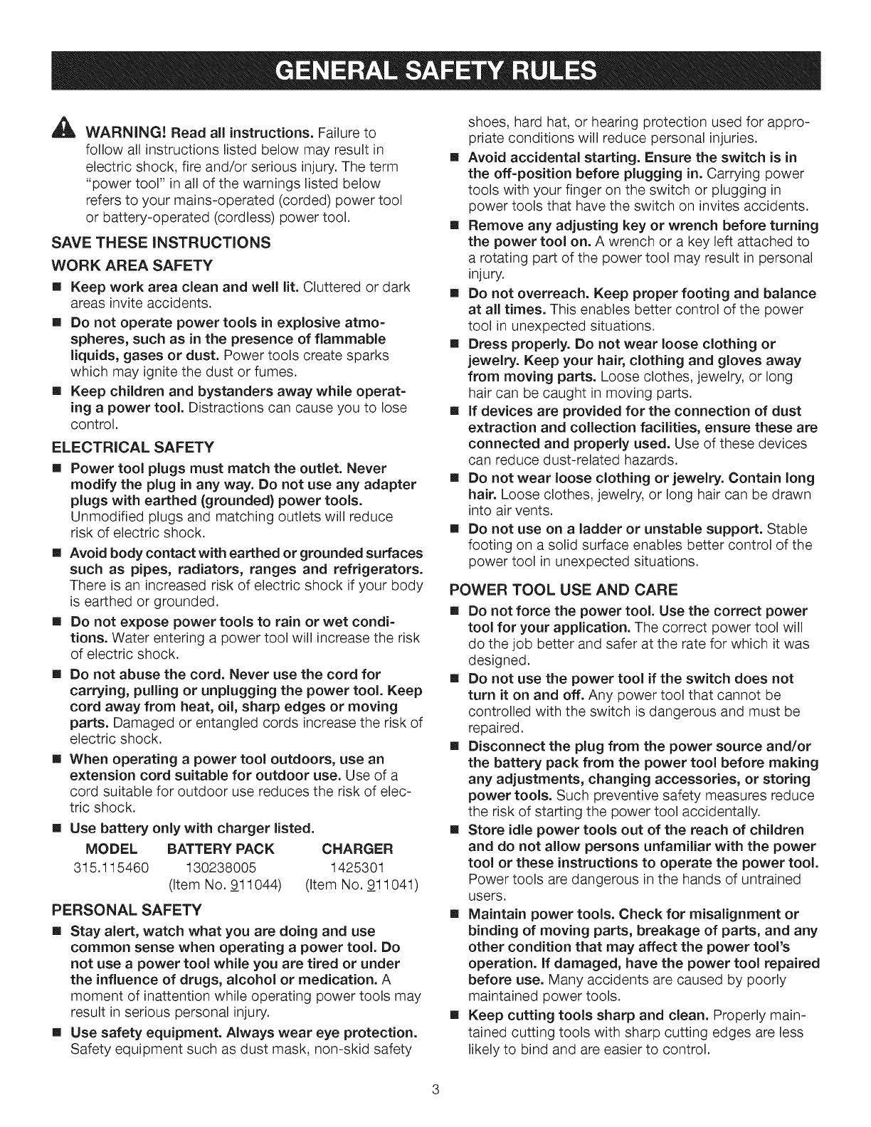 [] General Safety Rules .................................................................................................................................................... 3-4