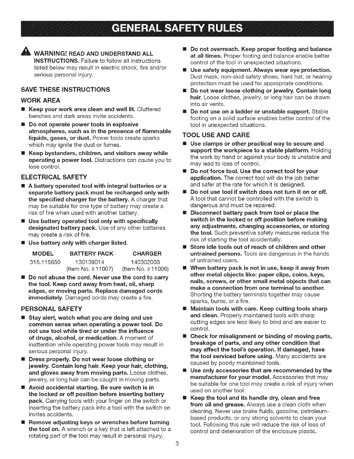 [] General Safety Rules .................................................................................................................................................... 3-4