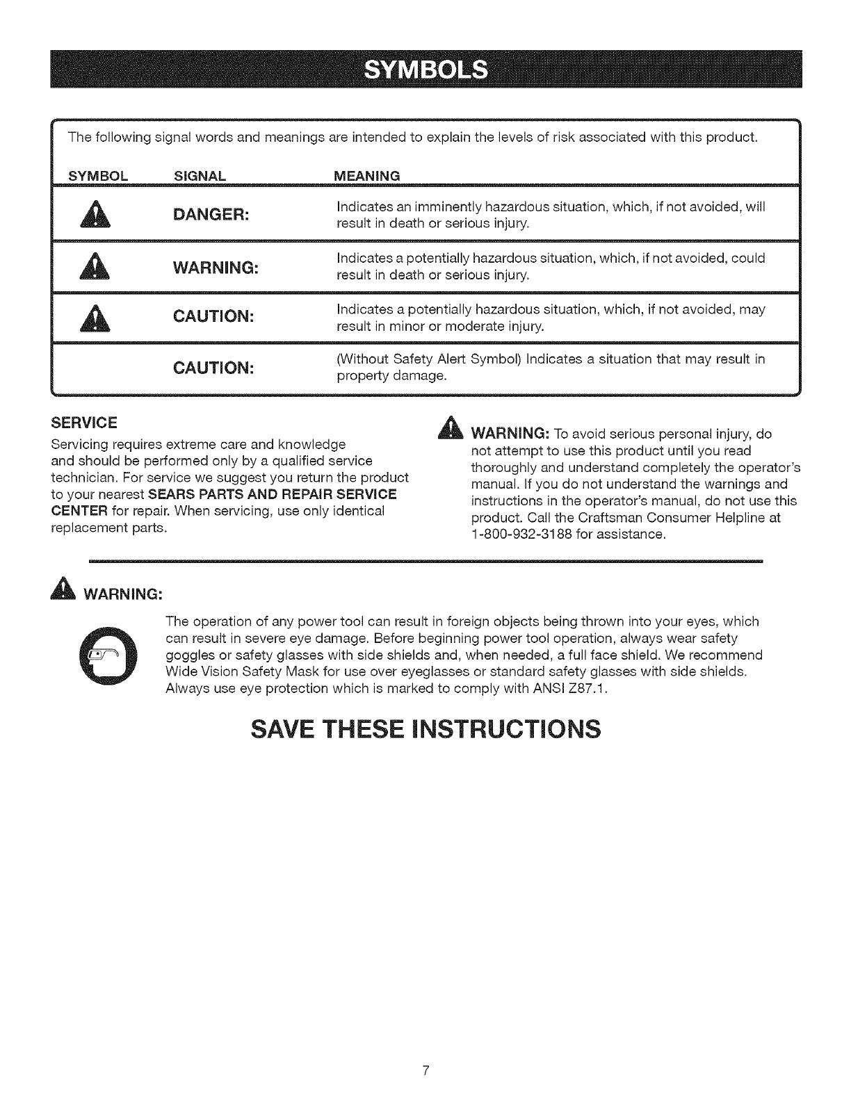 SEARS STORE OR OTHER CRAFTSMAN OUTLET (N THE UN(TED STATES FOR FREE REPLACEMENT.