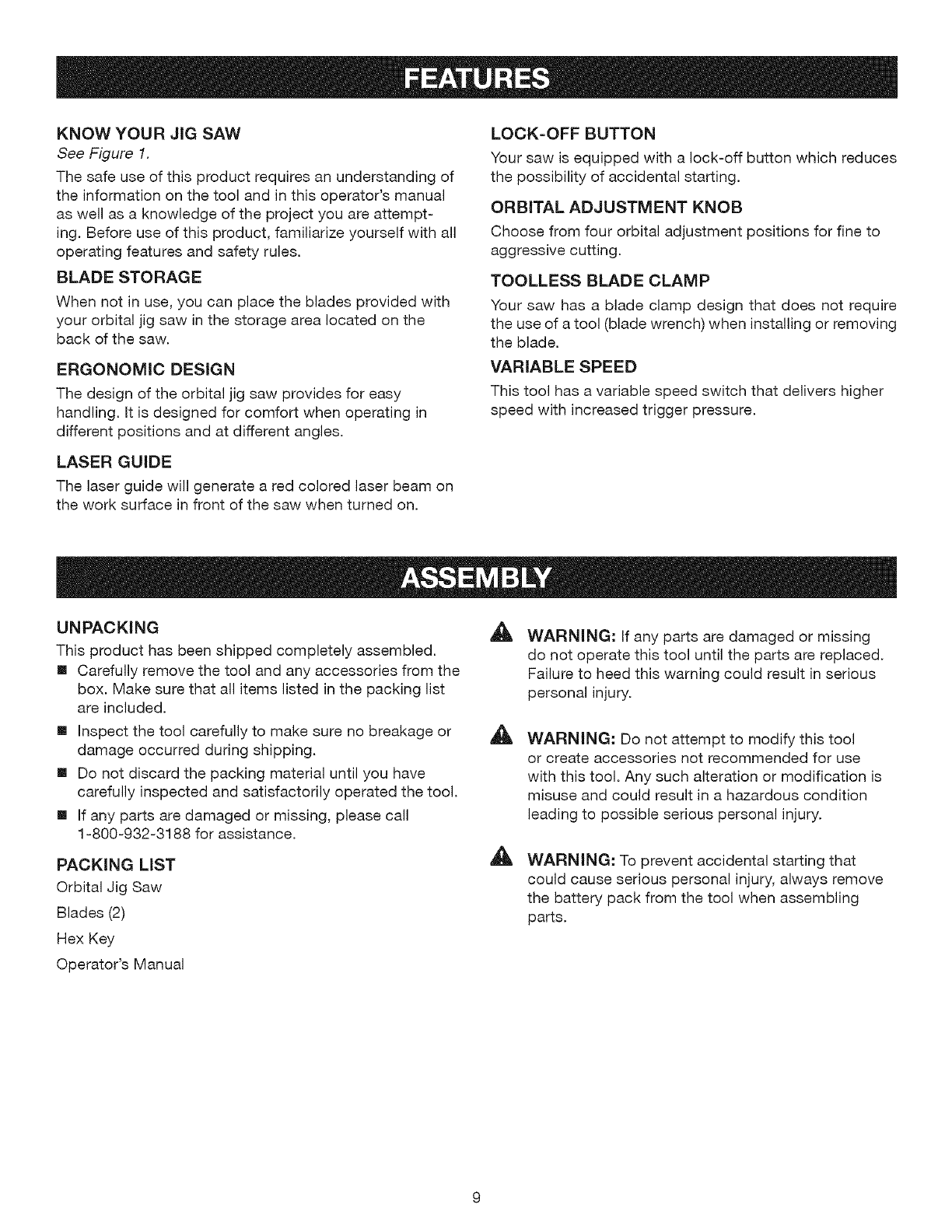 Craftsman 315115690 User Manual JIG SAW Manuals And Guides L0805559