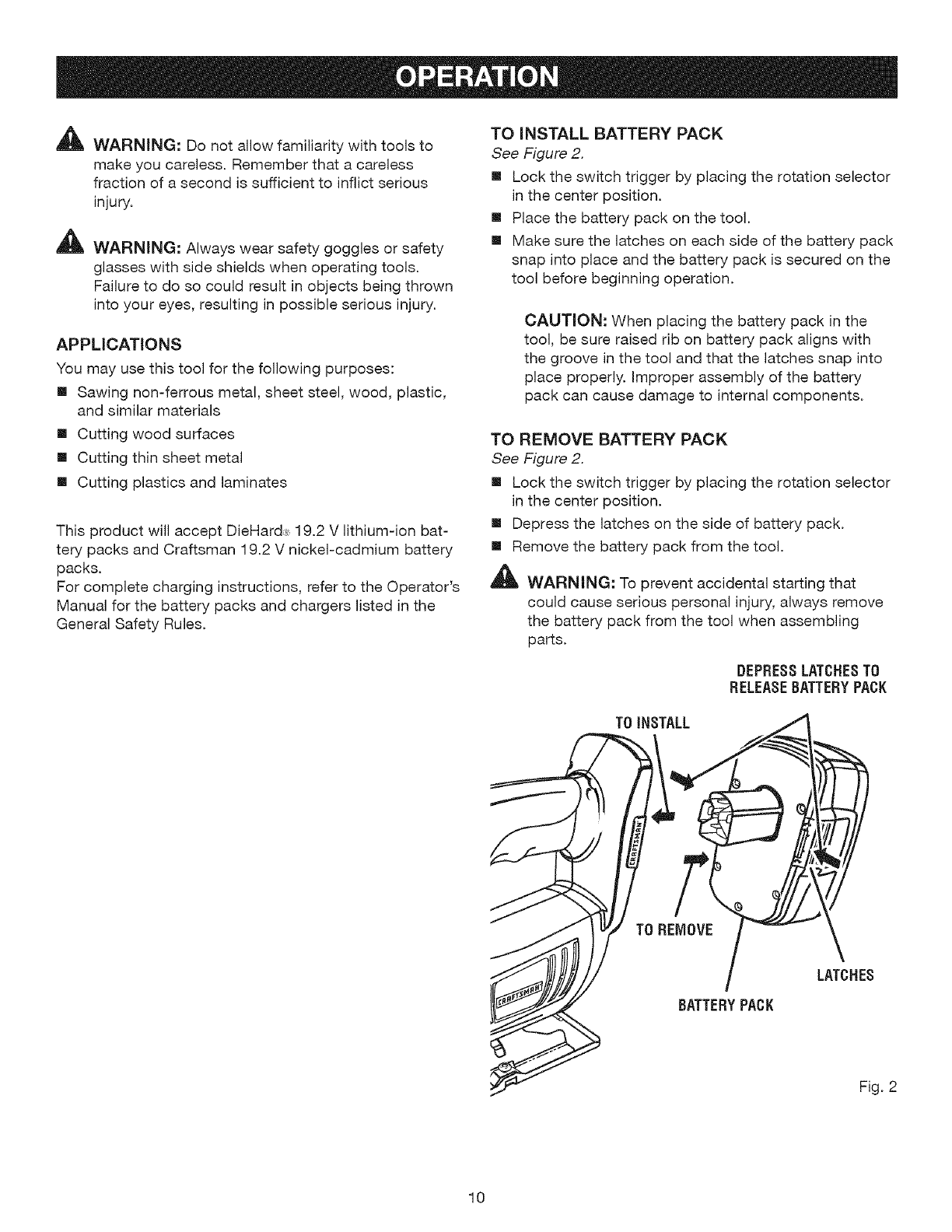 -- CRAFTSMAN 19,2 VOLT CORDLESS JIG SAW - MODEL NO, 315,115690 --