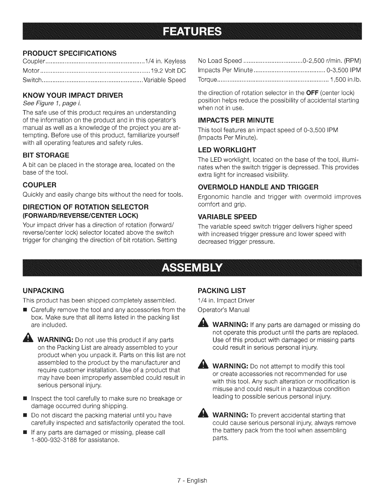 Craftsman 315116060 1105411L User Manual DRILL DRIVER Manuals And Guides