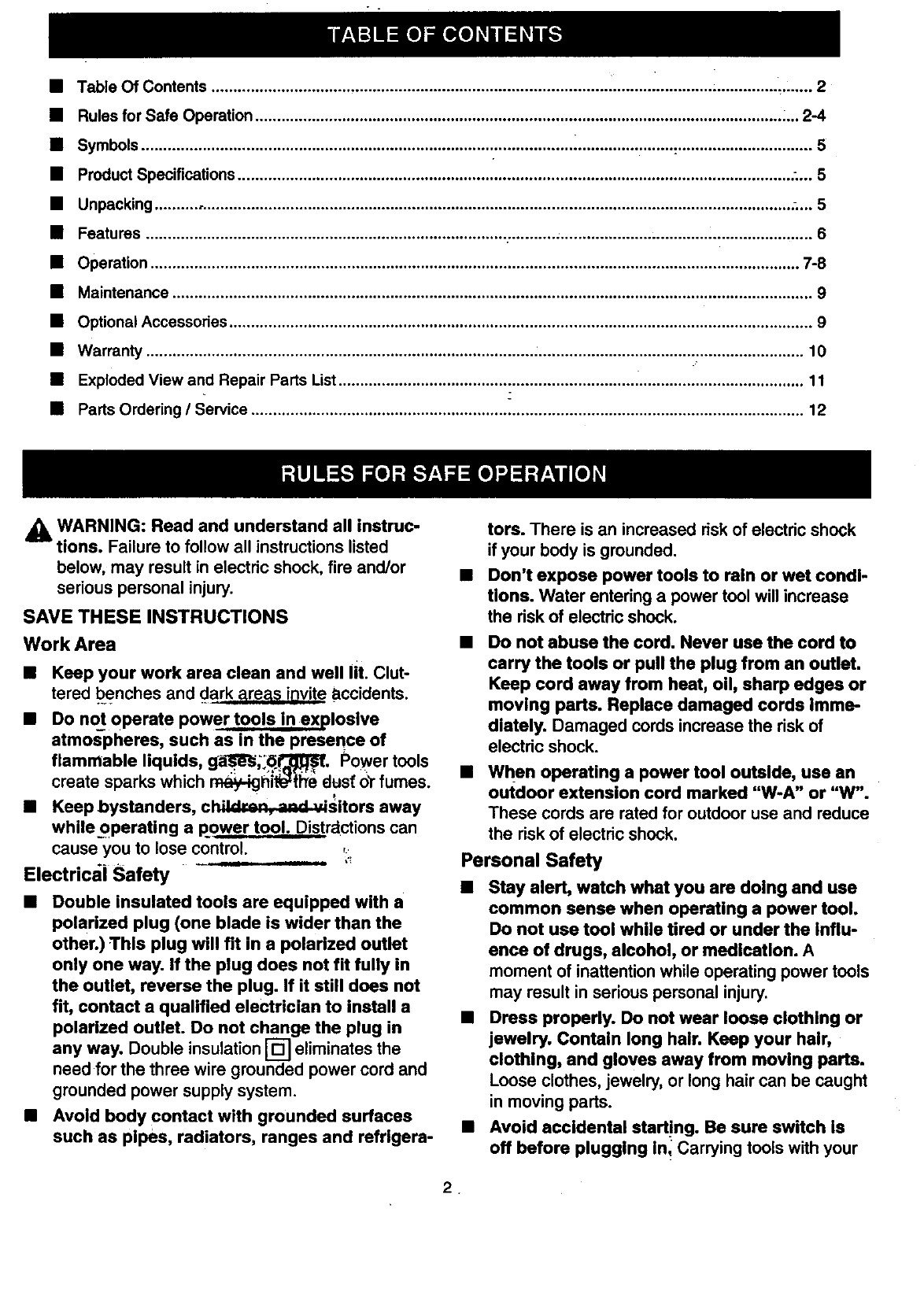 •Exploded View and Repair Parts List.................................................................... ....................................... 11